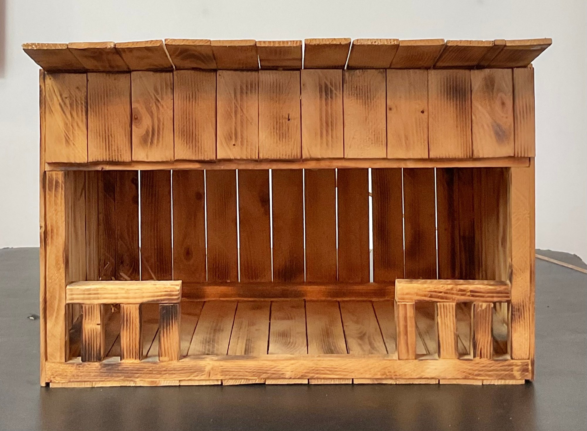 Wood Nativity Creche W/ Light - 12” tall x 17.5” long x 16” wide - good used condition