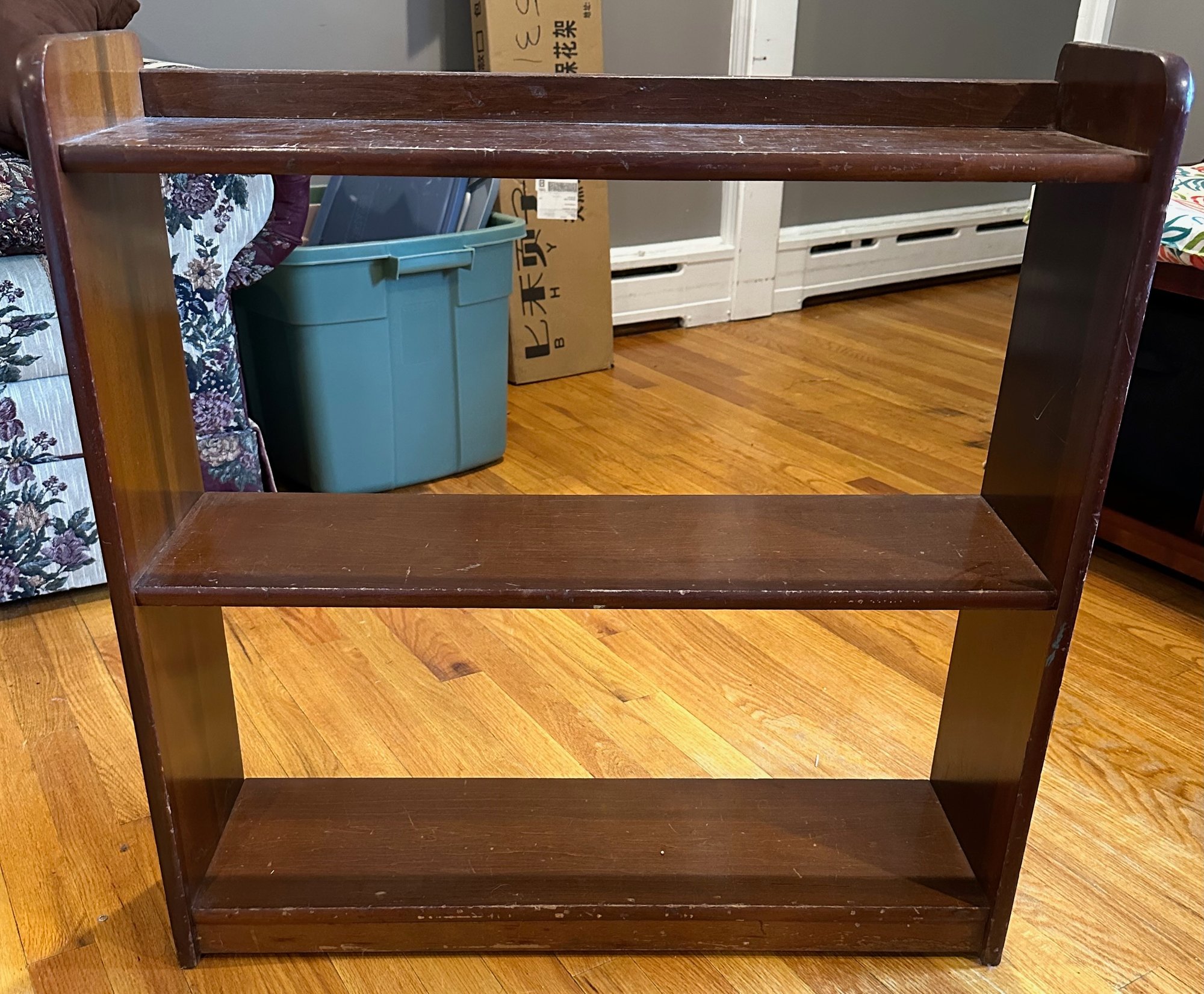 Wooden Bookshelf - 28.25'' x 8'' x 28.75'' - scratches from wear seen in photos - good used condition