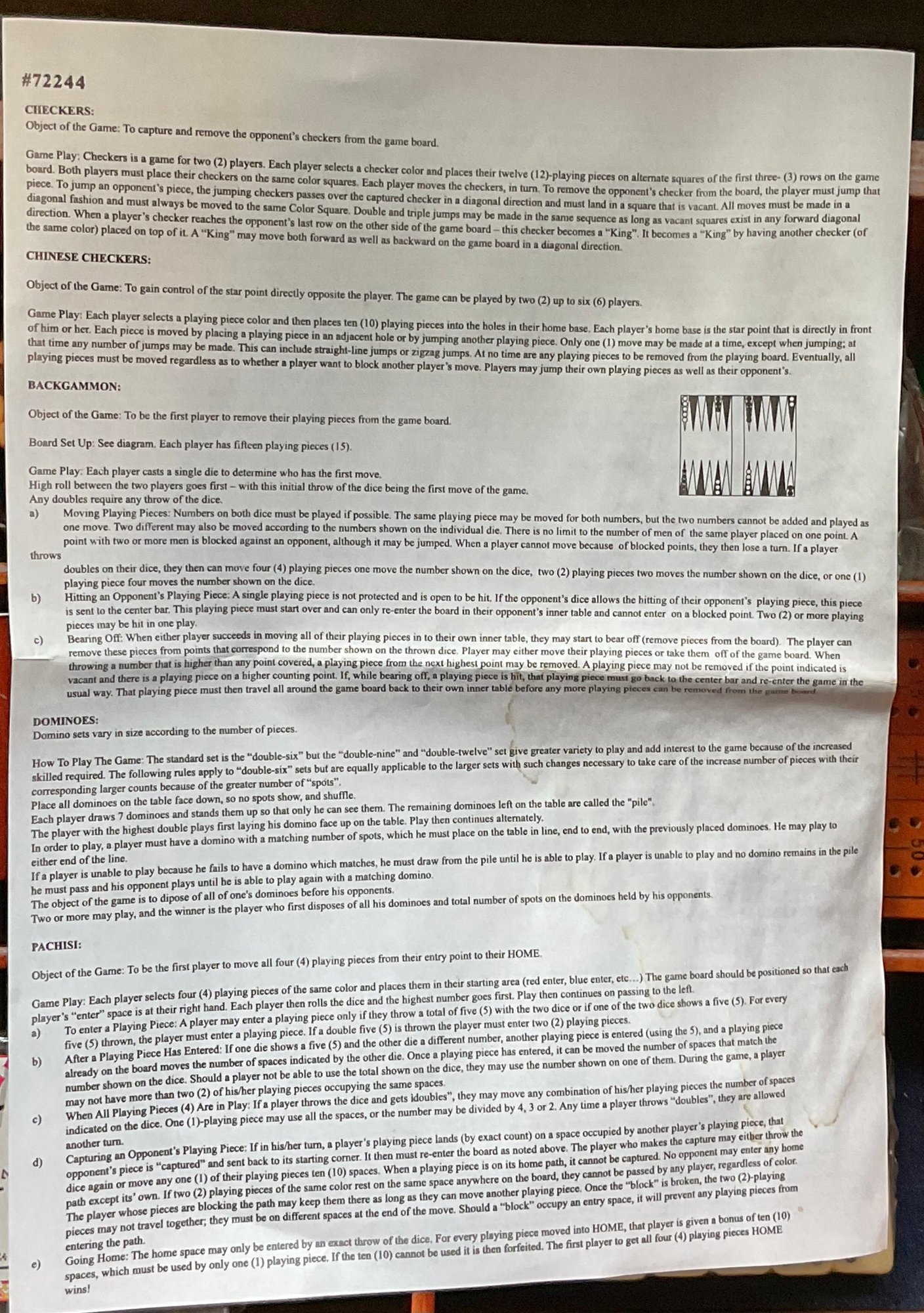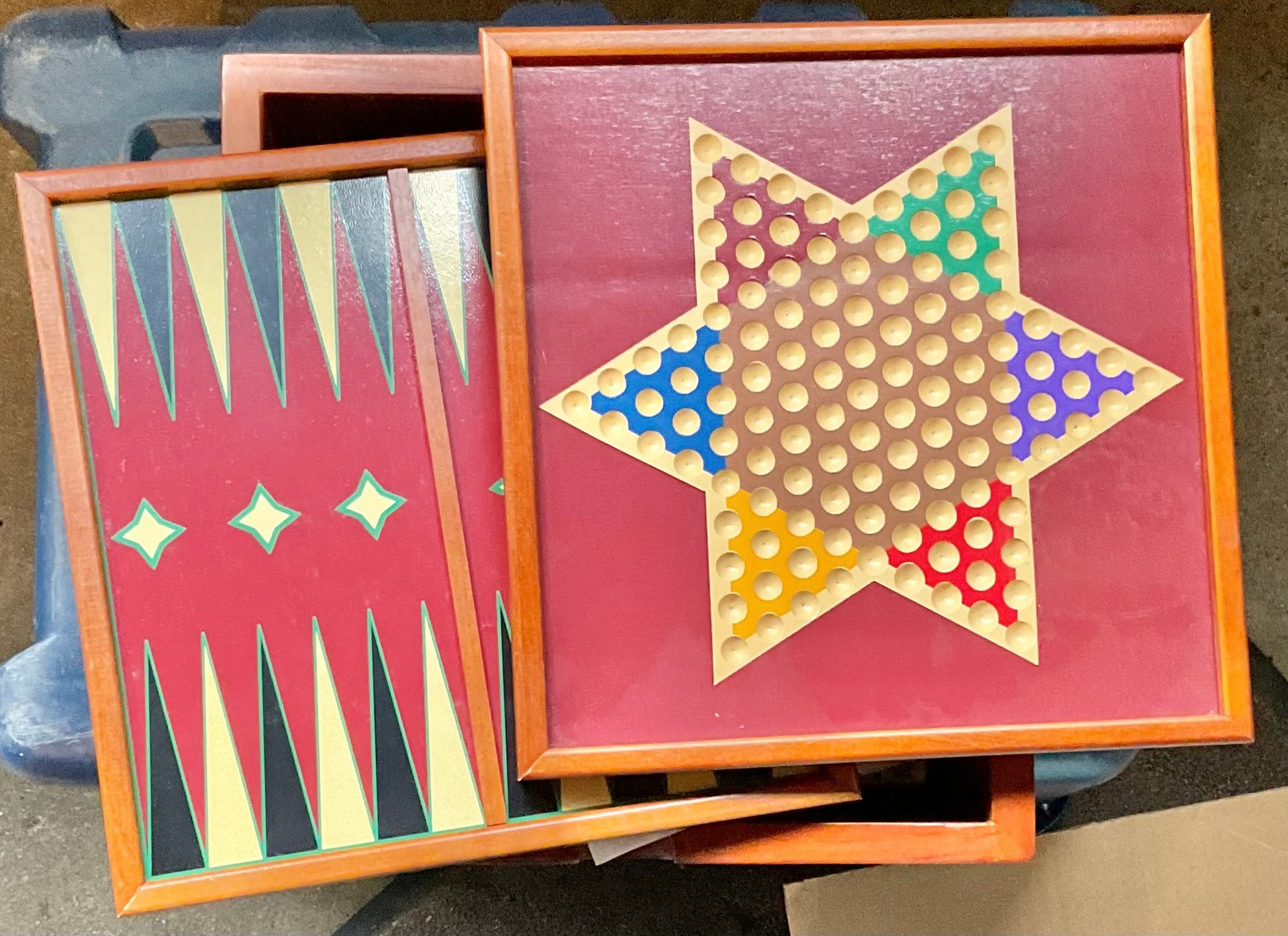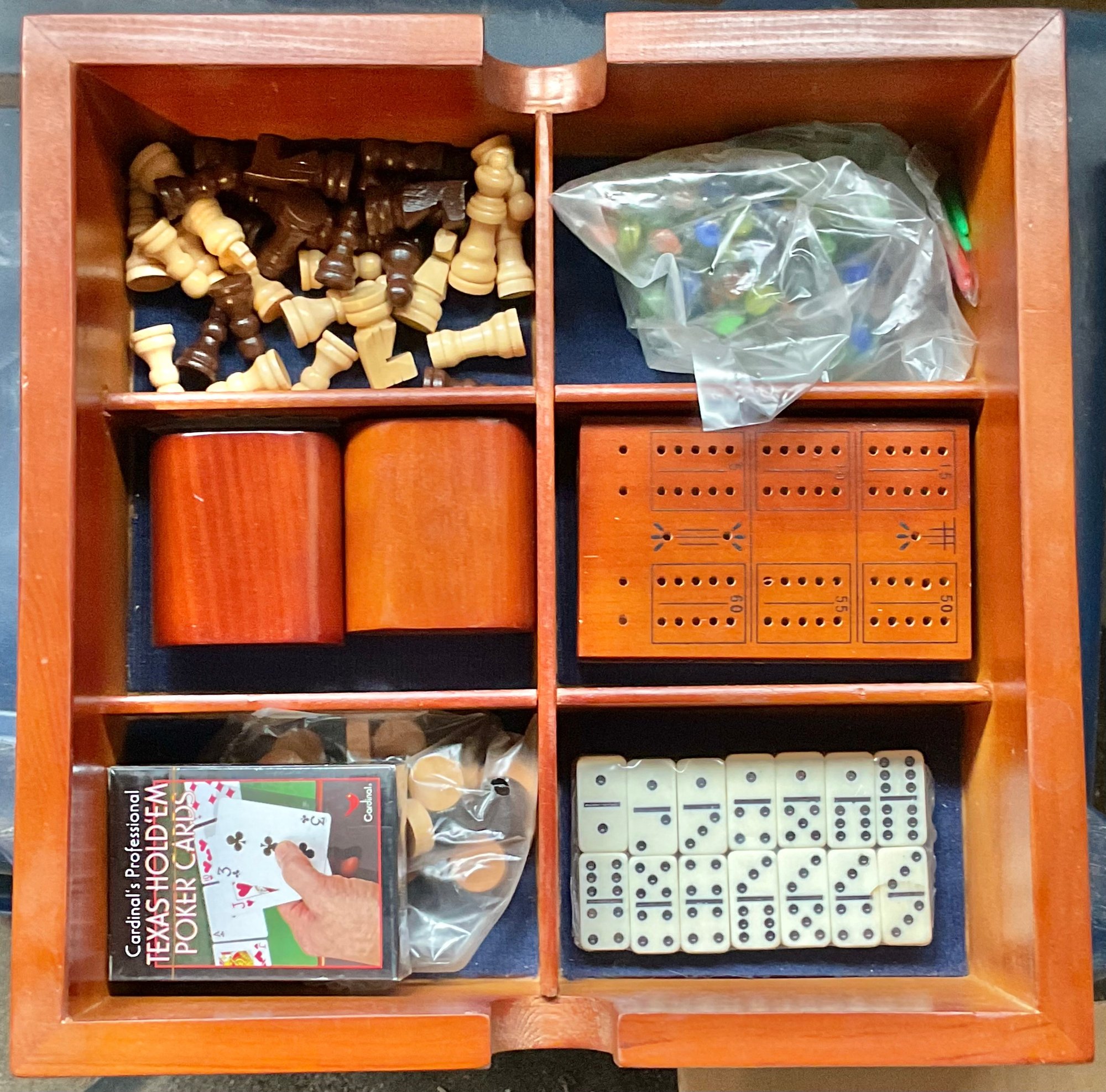 Wooden Multi-Game Board Game - chess, cribbage, poker, Chinese checkers - good used condition
