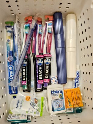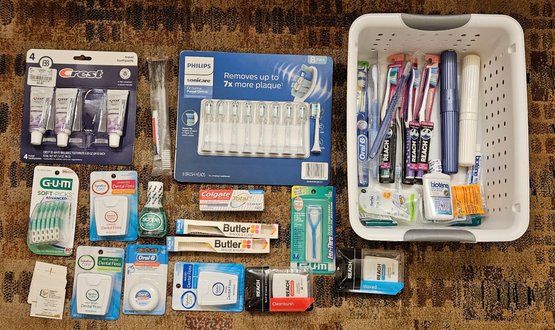 An Assortment Of Dental Items Incl. Dental Floss, Toothbrushes And More