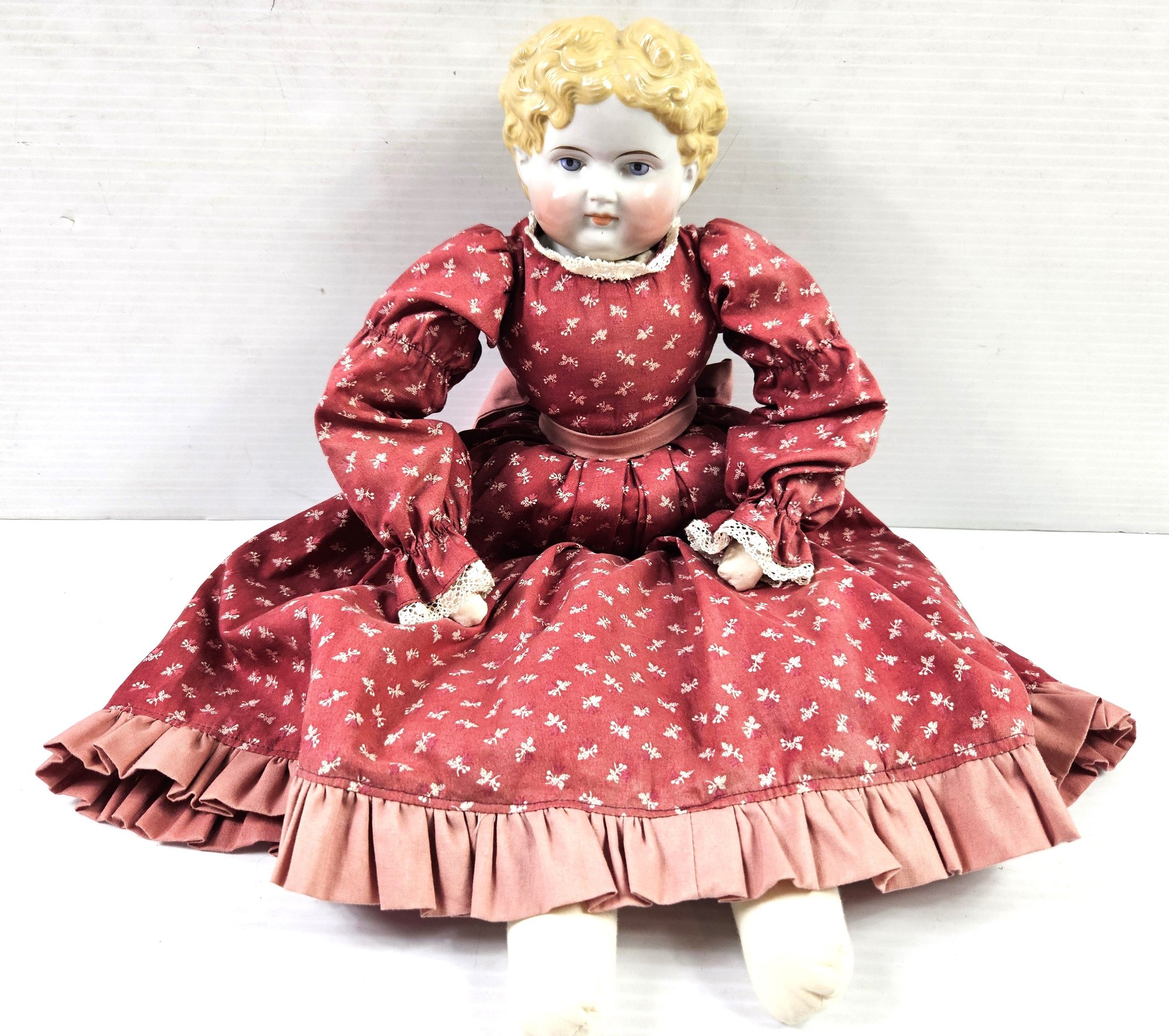 1890 Stuffed Body, Porcelain Head, Base Of Head Broken