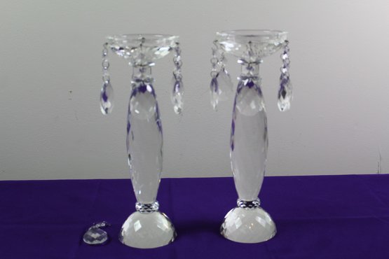 2 Crystal Candle Holders 12-in Tall