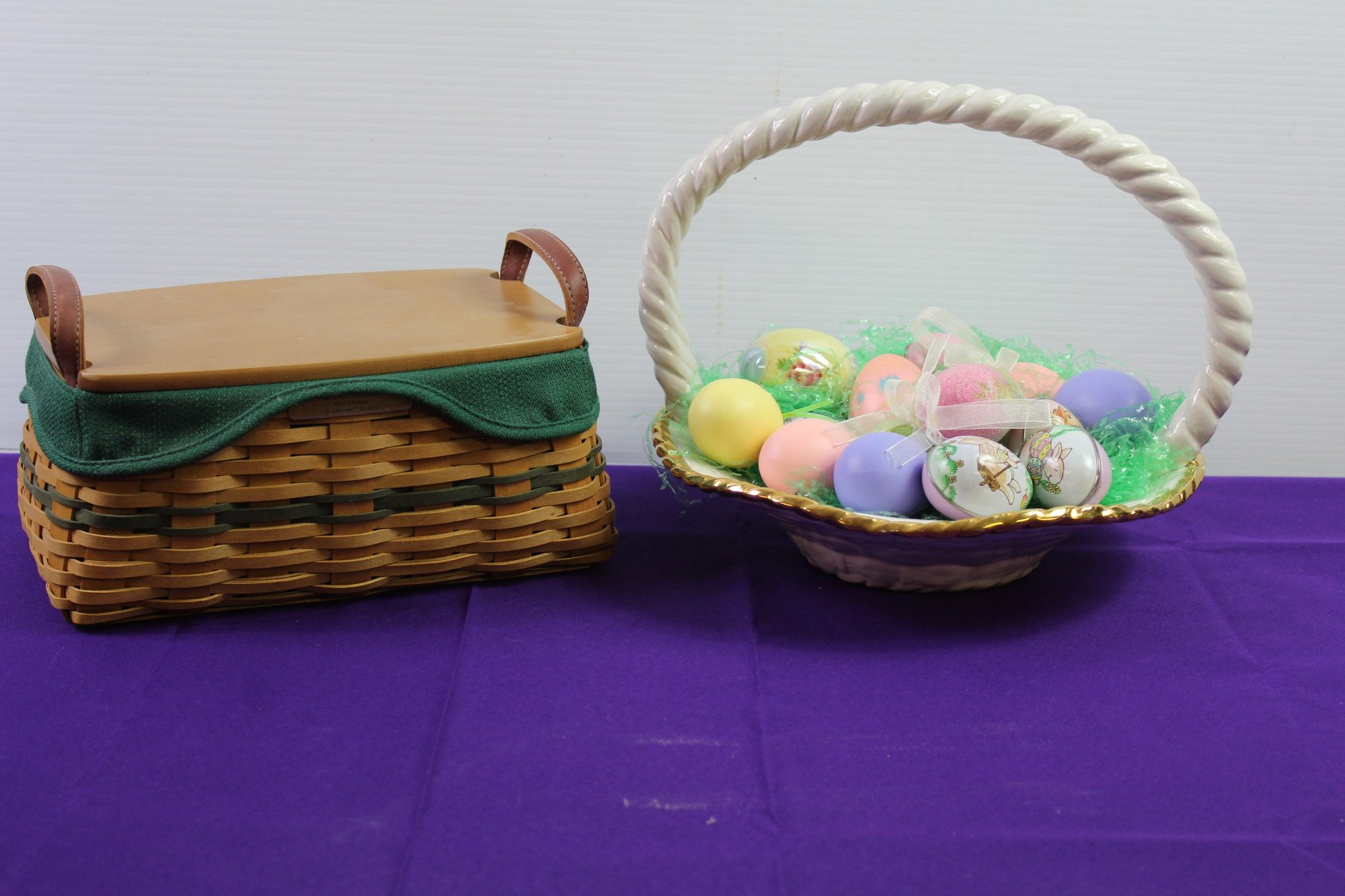2002 Christmas Collections Longaberger Basket, Ceramic Basket With Easter Eggs