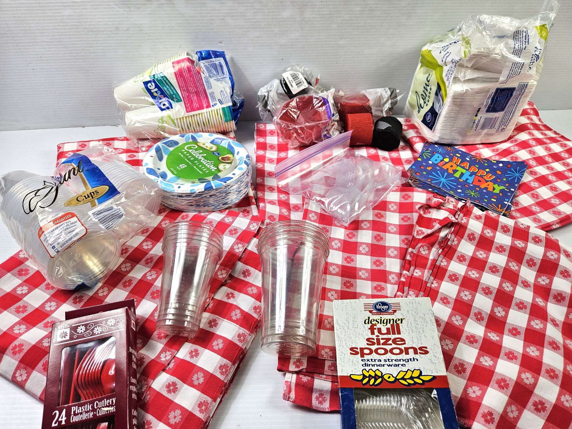 6 Cloth Picnic Tablecloths 51x54 And Paper Goods