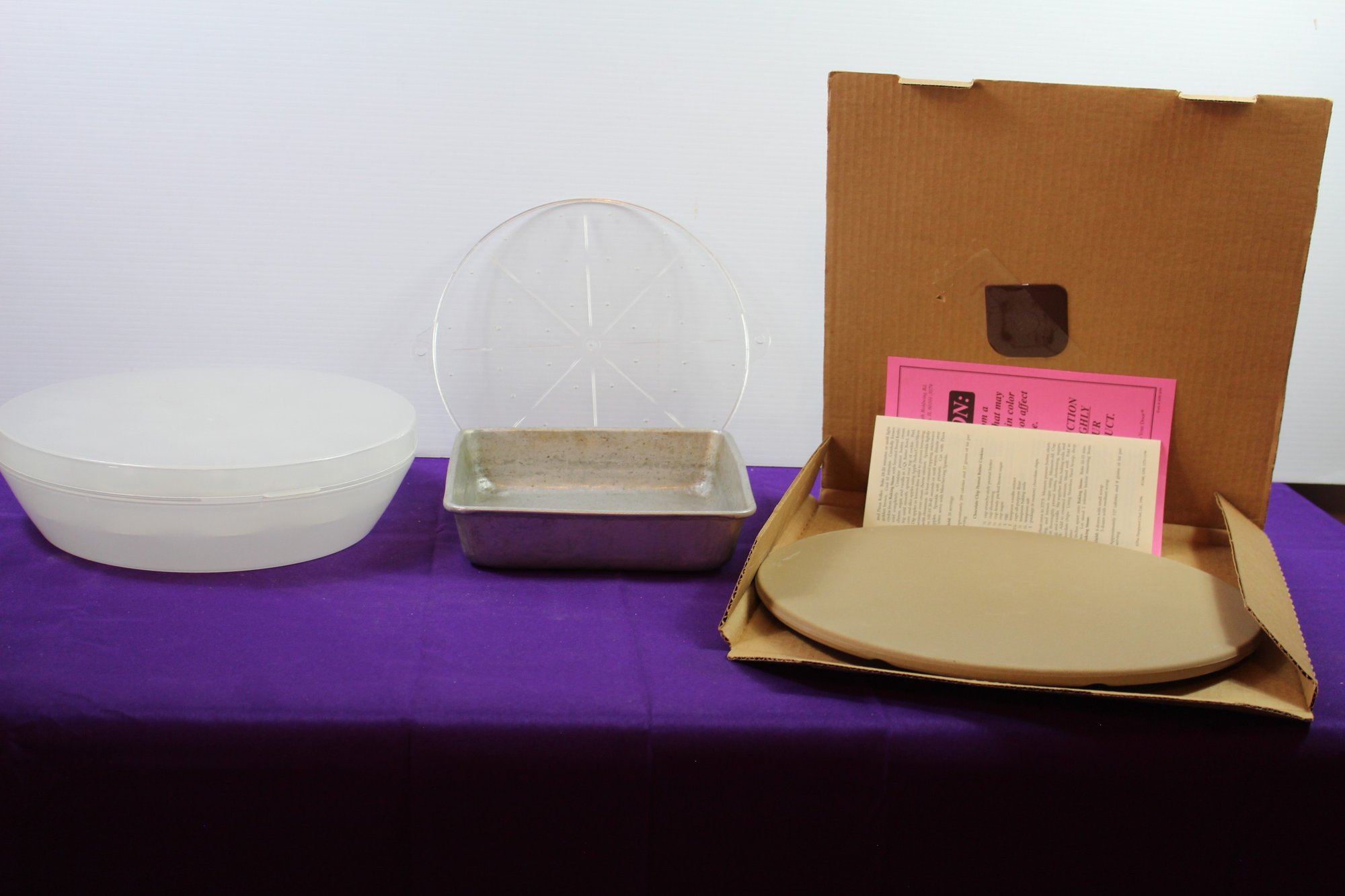 Pampered Chef 13-in Baking Stone, Deviled Egg Tray, Aluminum Cake Pan