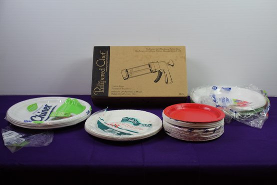 Pampered Chef Cookie Press, Assorted Paper Plates
