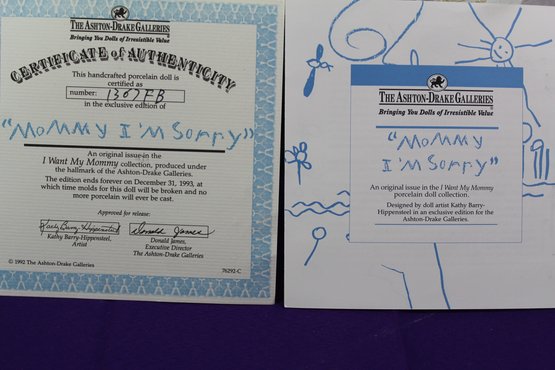 Ashton Drake Collection " Mommy I'm Sorry" Doll, Still In Box