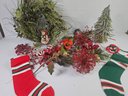 Beautiful Wreath And Other Red And Green Decorations Including Stockings