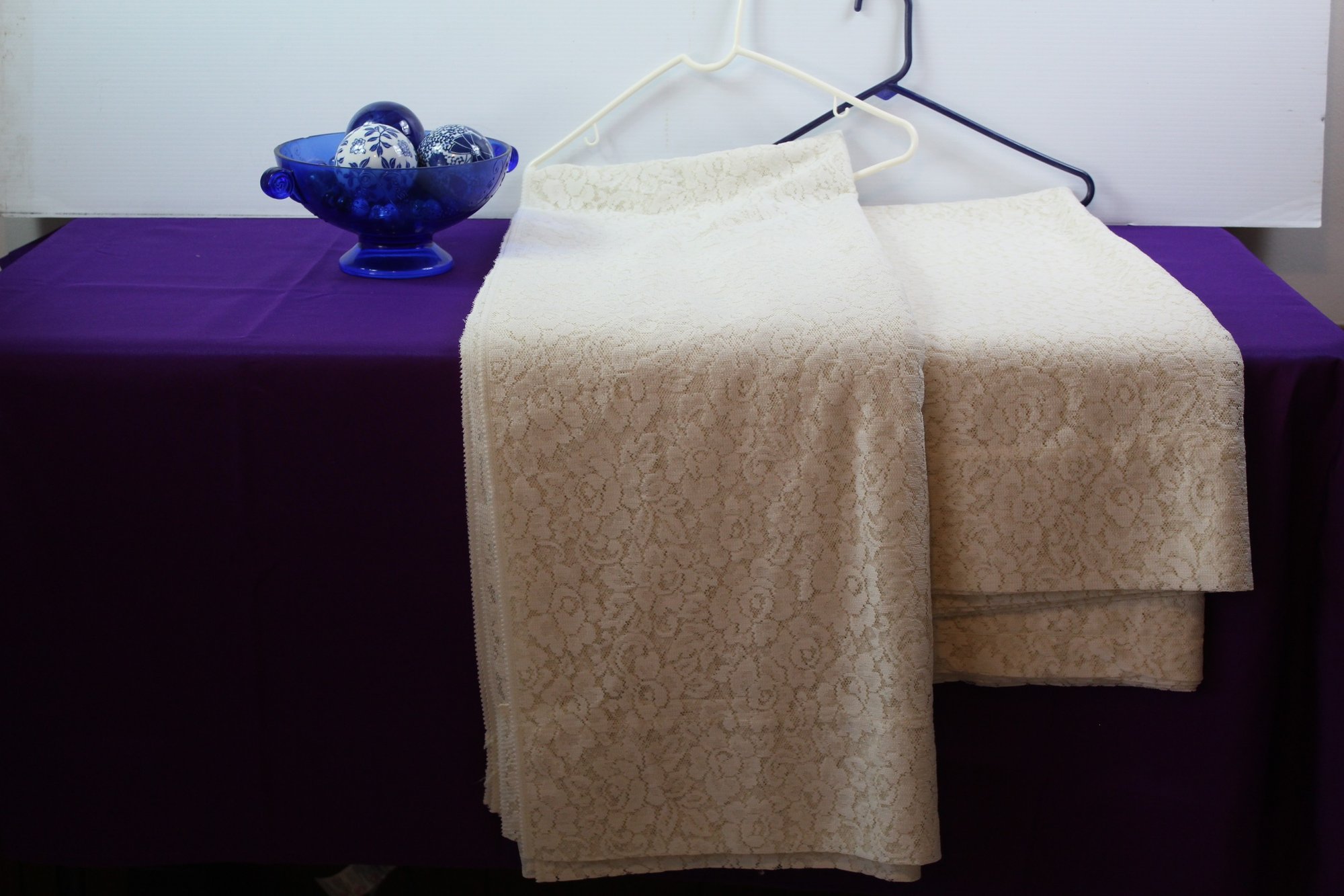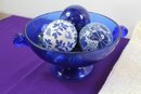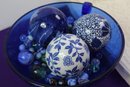 Cobalt Blue Bowl With Decorative Orbs, Curtains