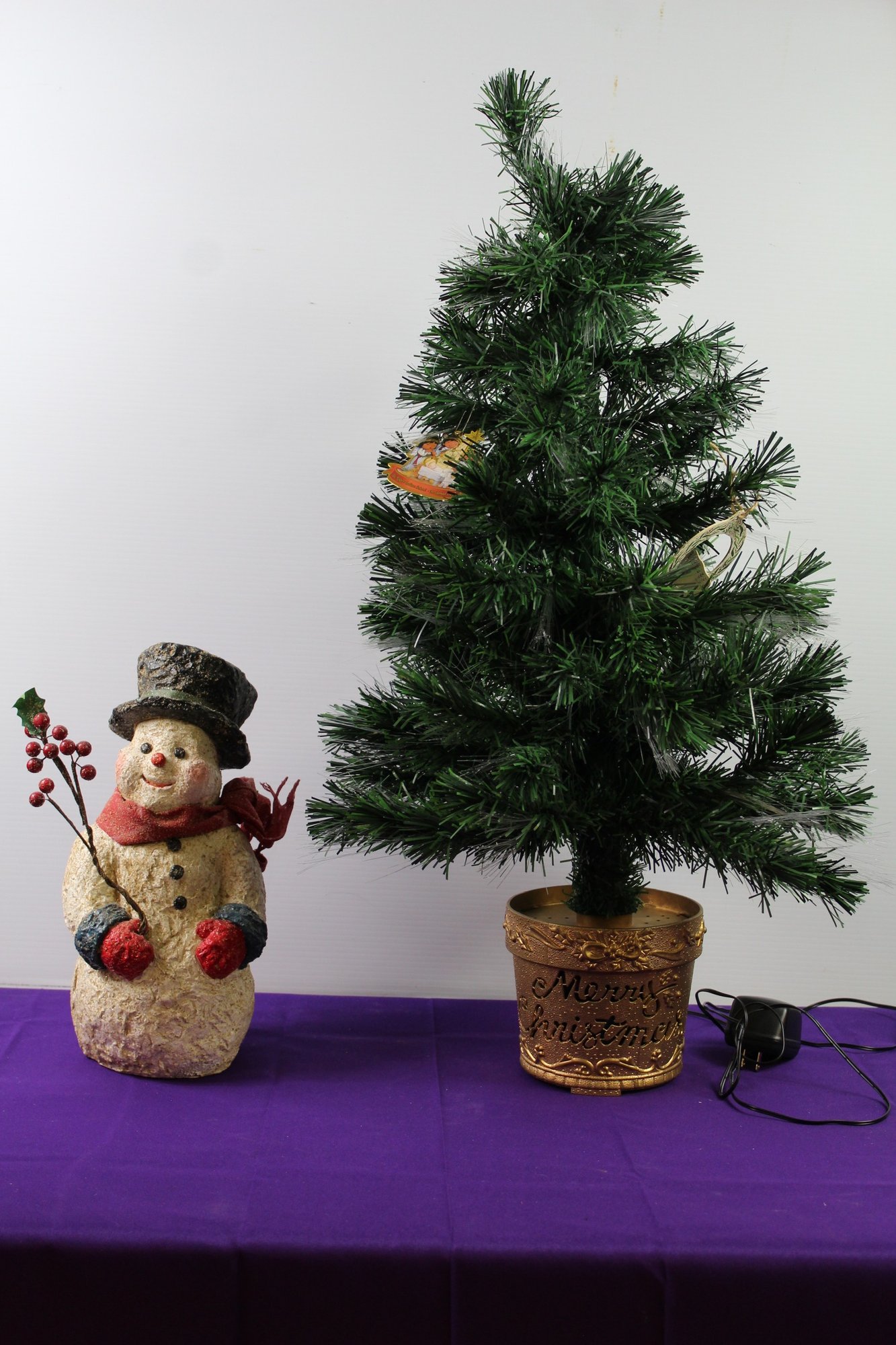 Fiber Optic Christmas Tree And Snowman 31 Inch Tree