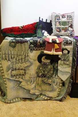 Holiday Pillows, Rug, Decor With Tote And Afghan.