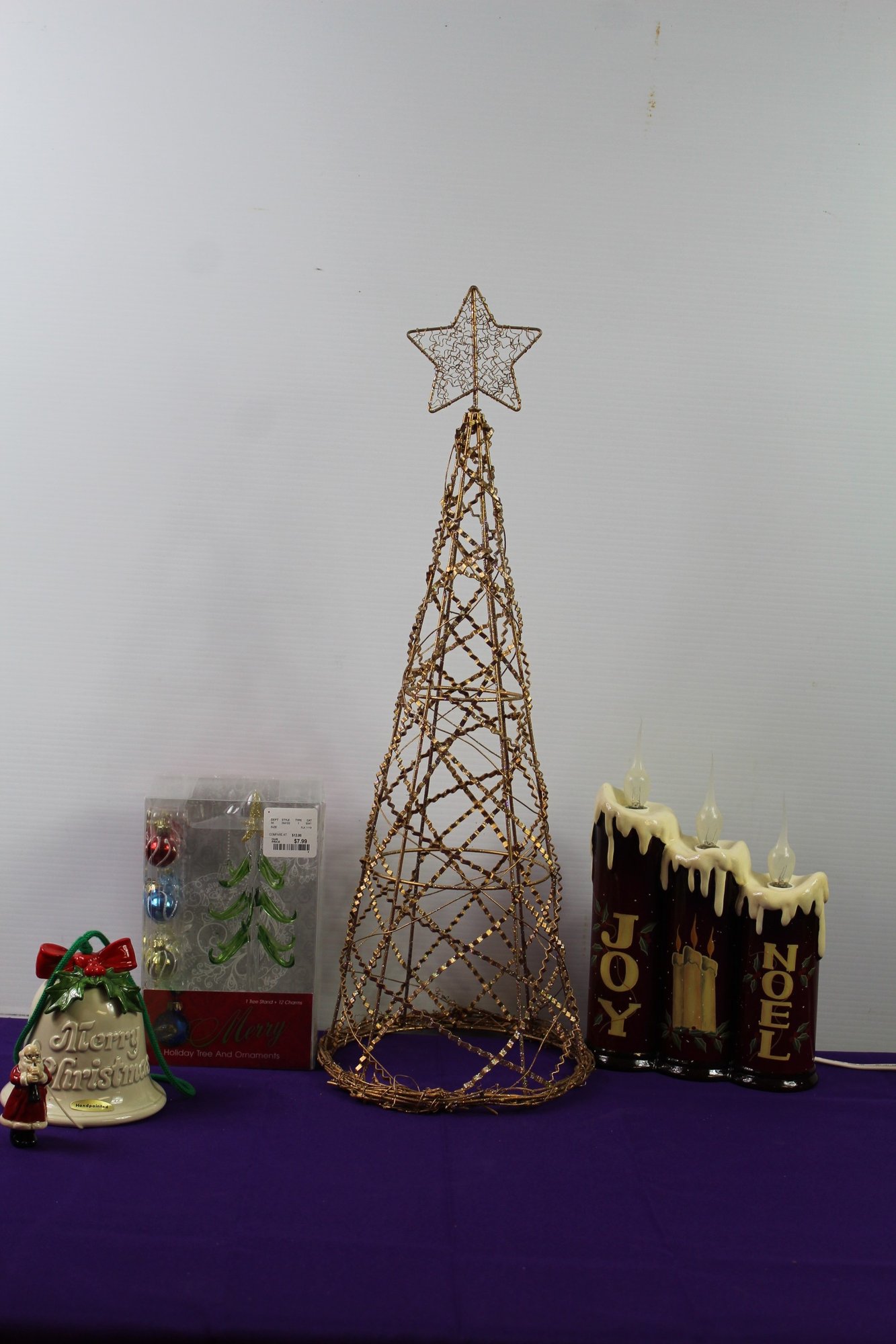 Lighted Three-tier Candle, Wire Tree, Christmas Bell, Crystal Tree And Ornaments