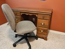Older Desk With Chair, Some Water Damage On Top 48 Wx 13.5 Deep, Chair Is On Rollers