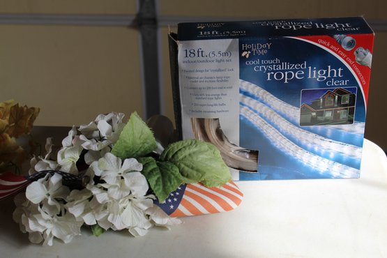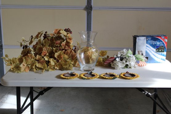 Rope Lights, Glass Vase, Coasters, Flowers