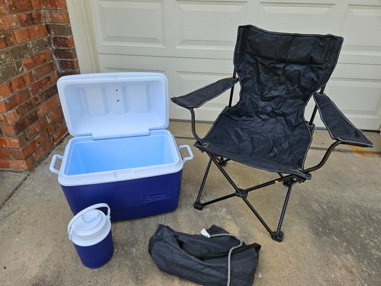 Rubbermaid Ice Chest And Beverage Container, Folding Chair In Bag
