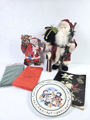 Santa's Victorian Pull String Santa, Longaberger Plate, Luminaire Bags