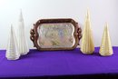 Serving Tray And Four Lighted Christmas Trees