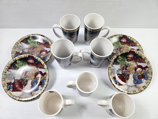 Susan Winget Cic Christmas, Four Plates, Four Tall Mugs, Three Short Mugs