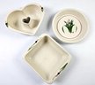 Three Baking Dishes, Only One Marked Clay Design Is - 8x8 Square Has Crack