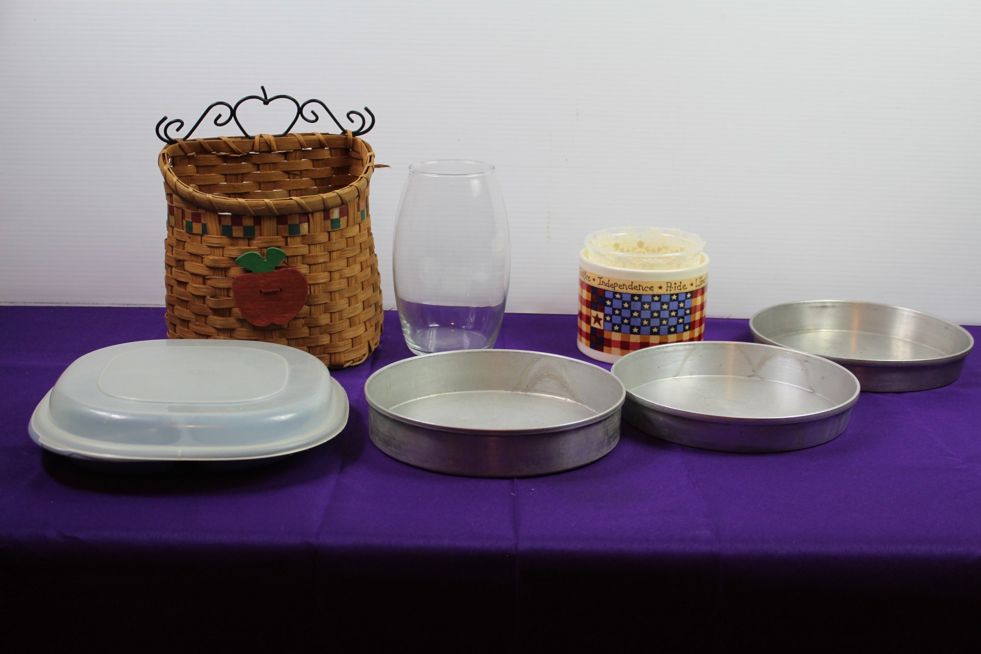 Three Round Cake Pans, Microwave Dinner Plate, Wall Hanging Basket
