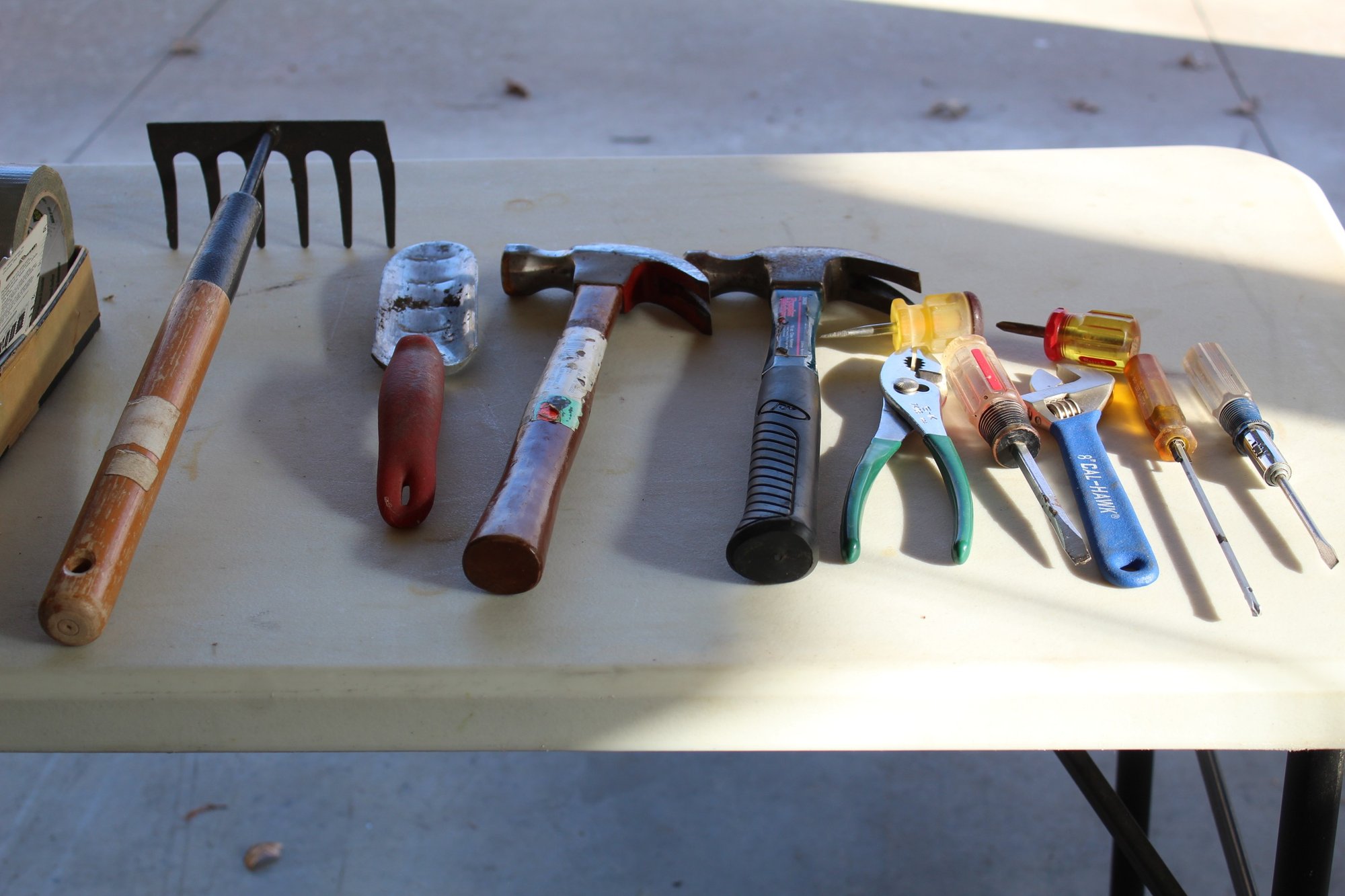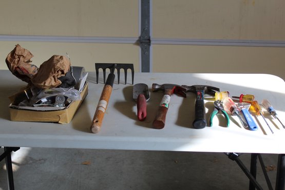 Tools, Hammers, Garden Rake, Miscellaneous Nails And Hardware