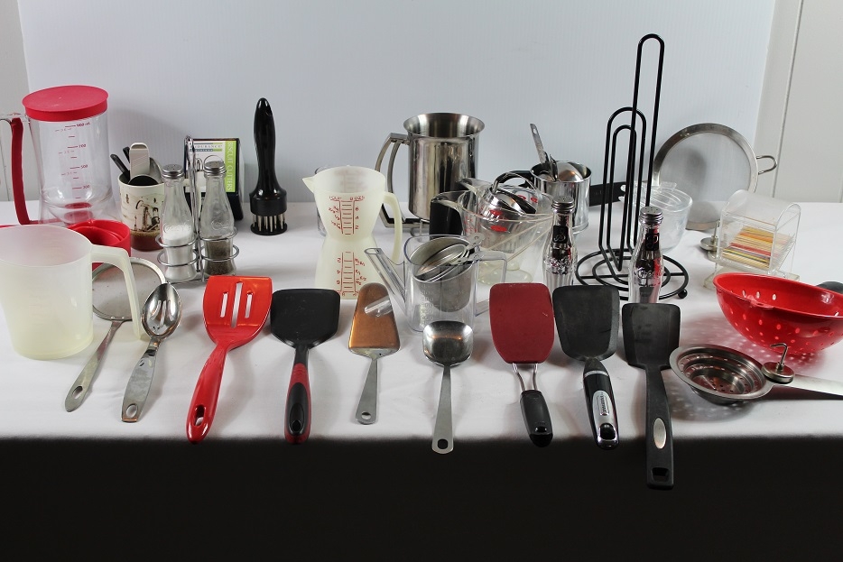 Two Boxes Of Kitchen Utensils, Measuring Cups, Sifter