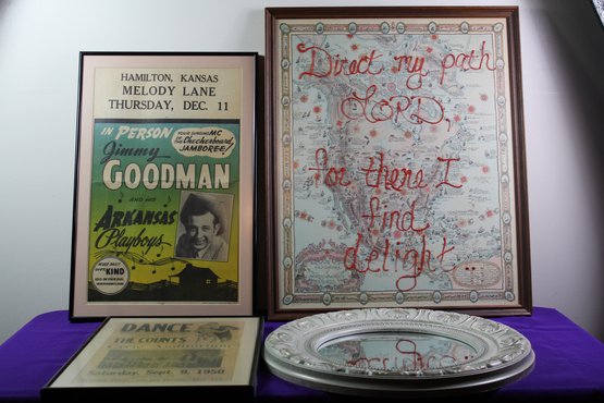 Two Poster Prints, Mirror- Oval, Framed Wall Decor