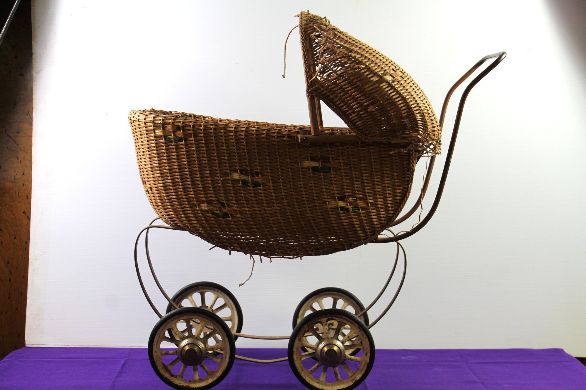 Vintage Child's Baby Stroller, Wicker, Some Repair Needed