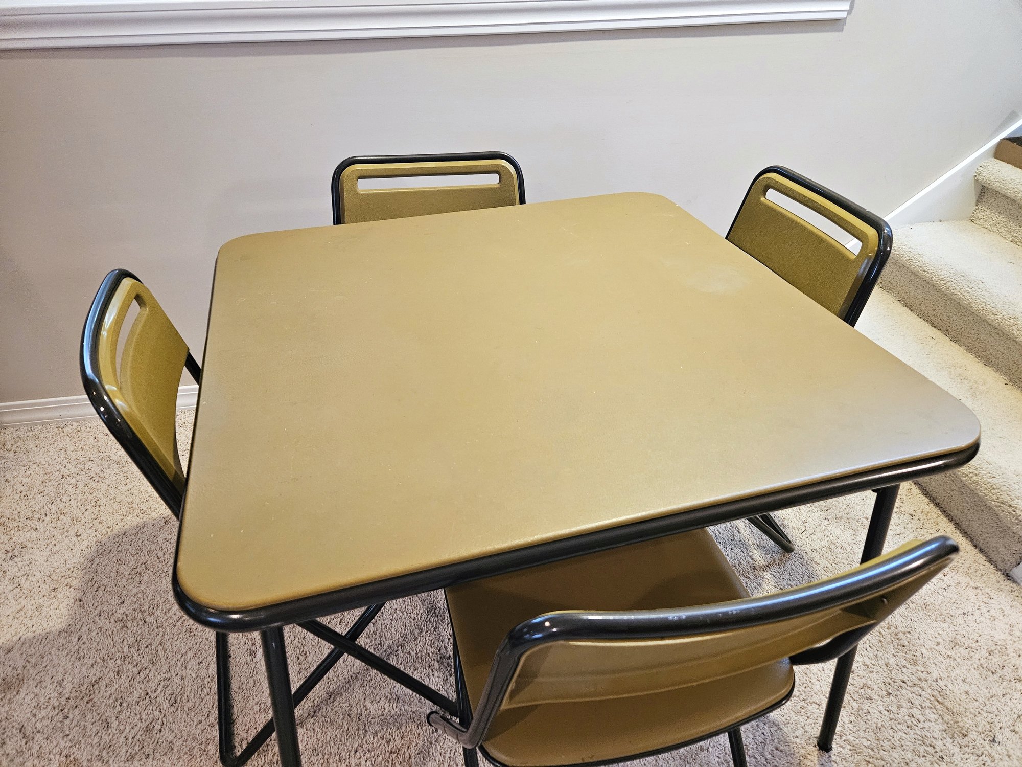 Vintage Cosco Table And Four Chairs - Nice Shape- One Chair Vinyl Is Pulling Away In Front