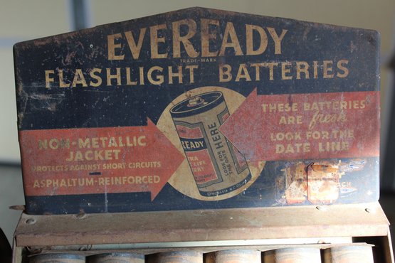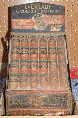 Vintage Eveready Flashlight Battery Storage Display Case, 1930s, Rare