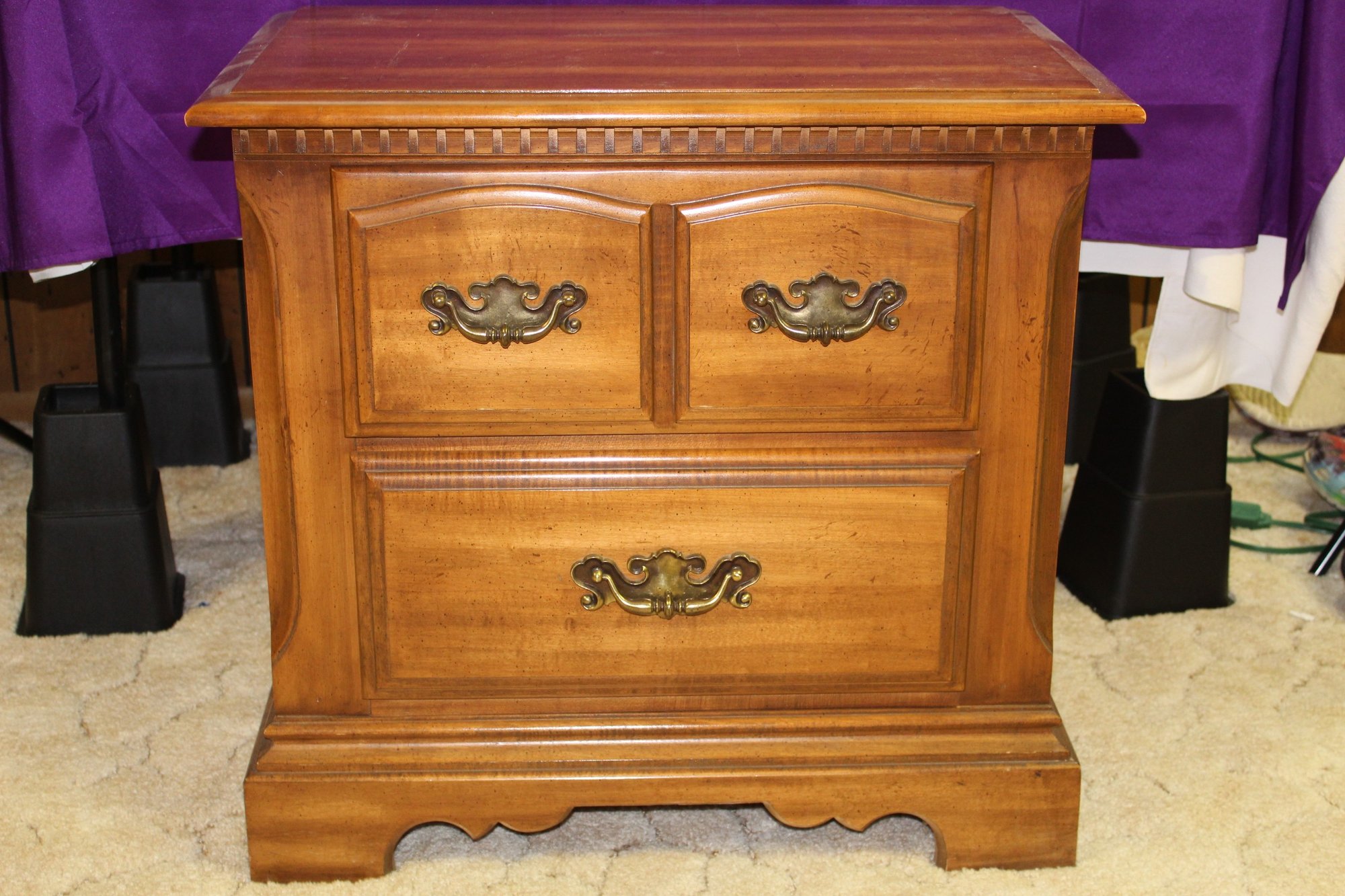 Wood Nightstand, Two Drawer, 24-in Tall, 25 In Wide