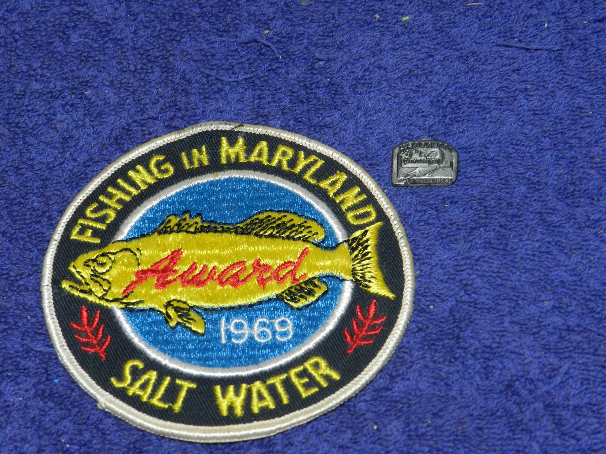 1969 STERLING SILVER MARYLAND SPORTFISHING TOURNAMENT PIN & PATCH