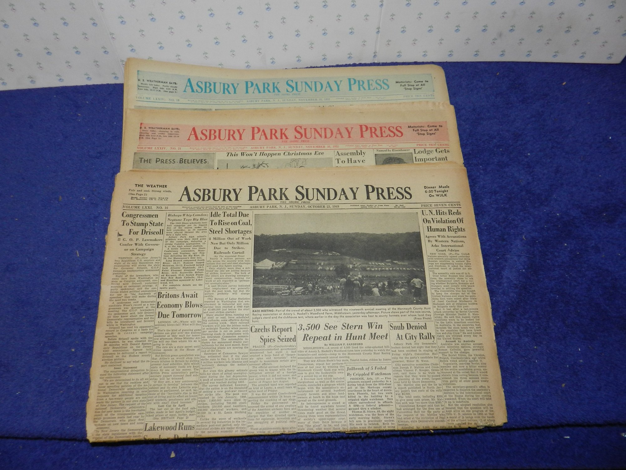3 ASBURY PARK PRESS NJ SUNDAY EDITION NEWSPAPERS 1949 1952