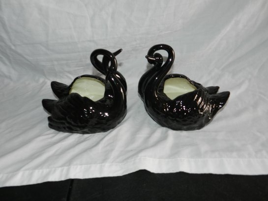 PAIR OF BLACK INTERTWINED SWAN PLANTERS