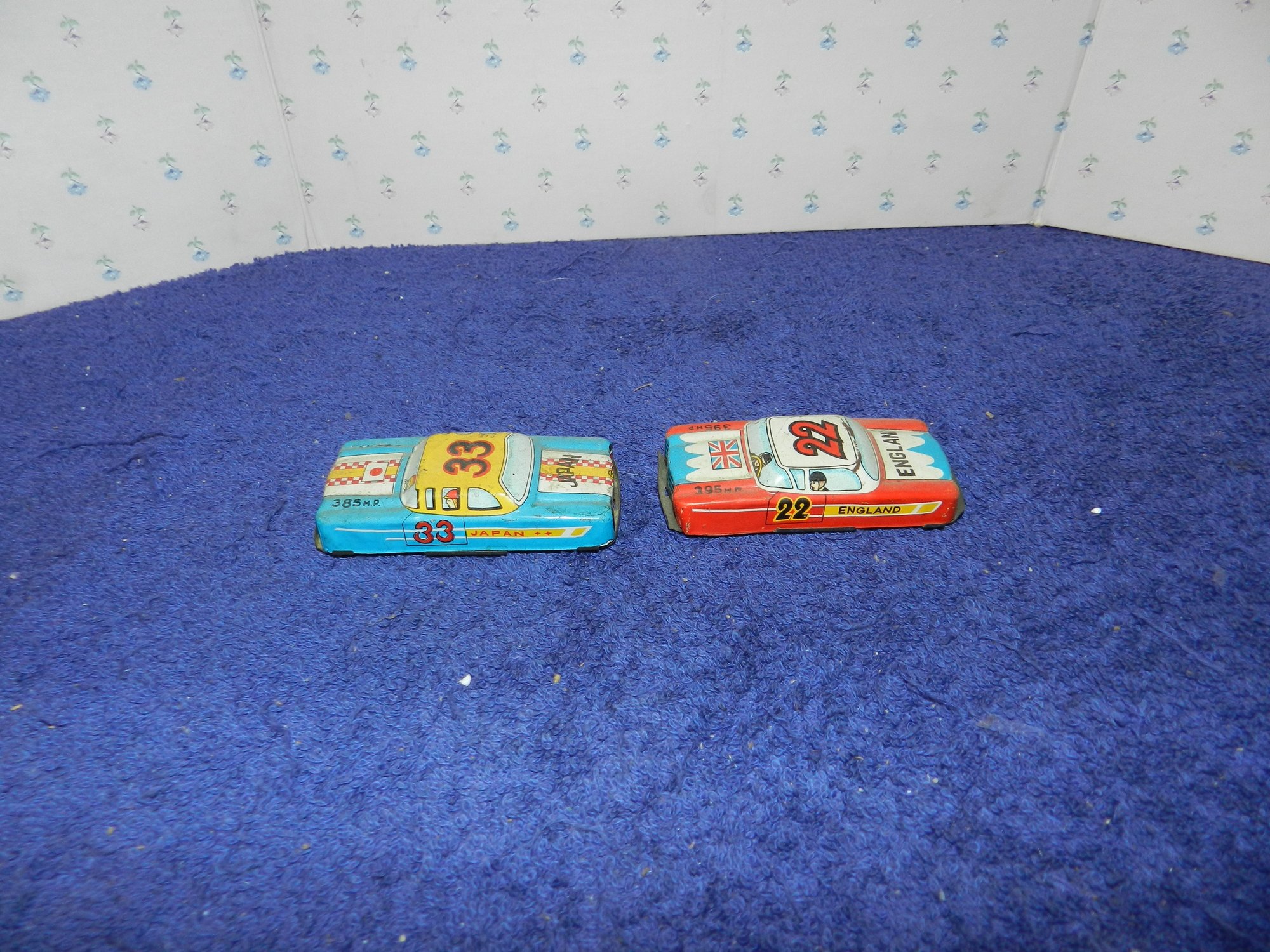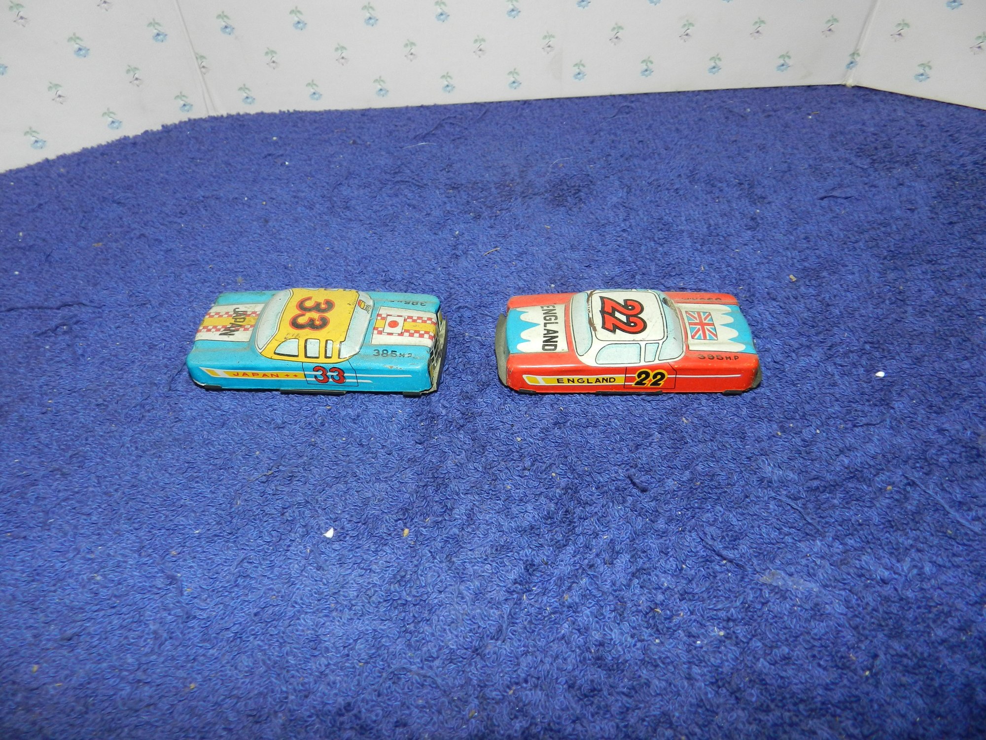 PAIR OF TIN LITHO RACE CARS MADE IN JAPAN