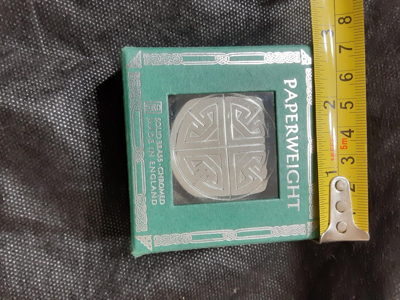 CELTIC THEMED PAPERWEIGHT CHROMED MADE IN ENGLAND