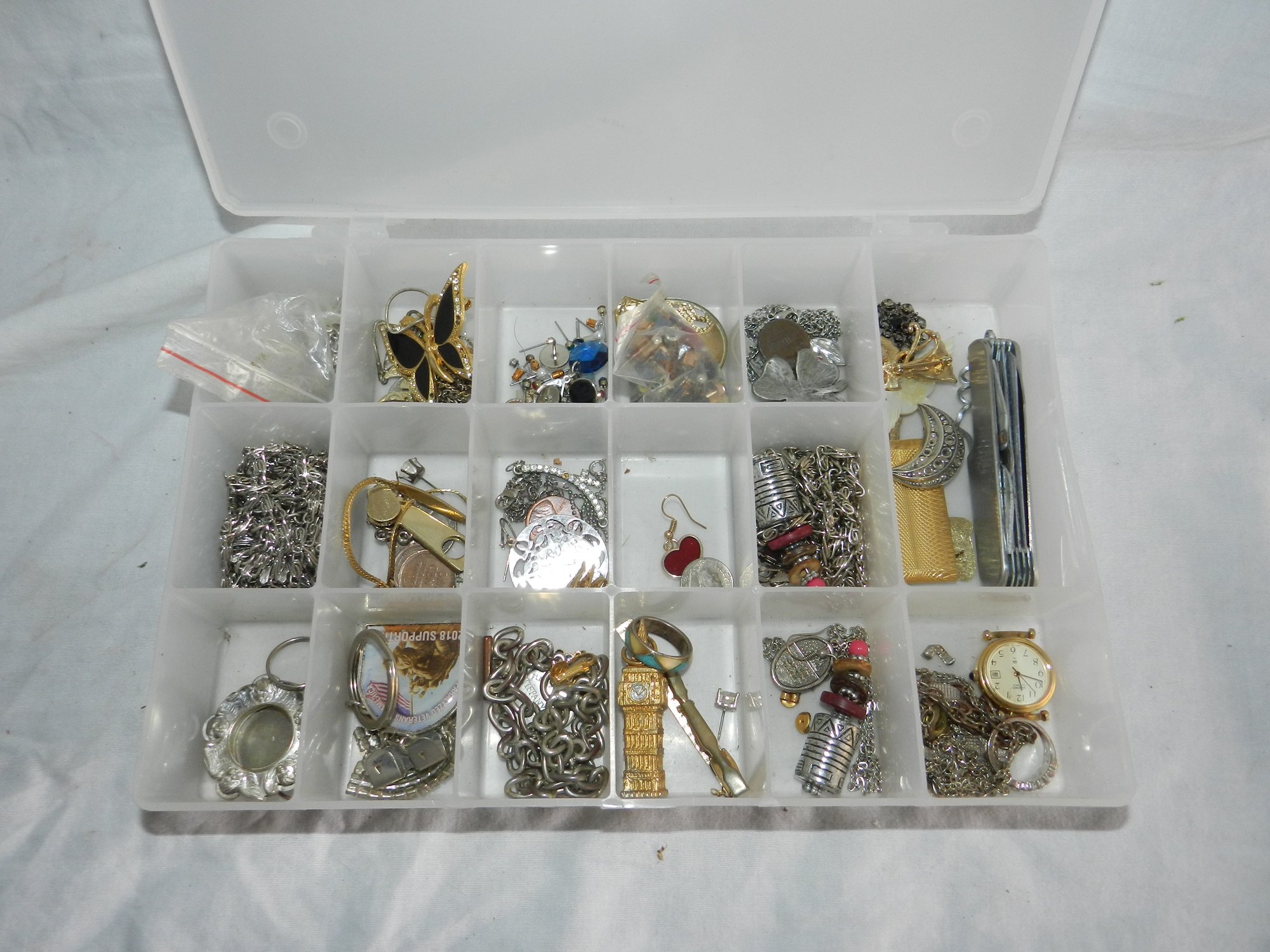 COLLECTION OF COSTUME JEWELRY WATCHES POCKET KNIFE
