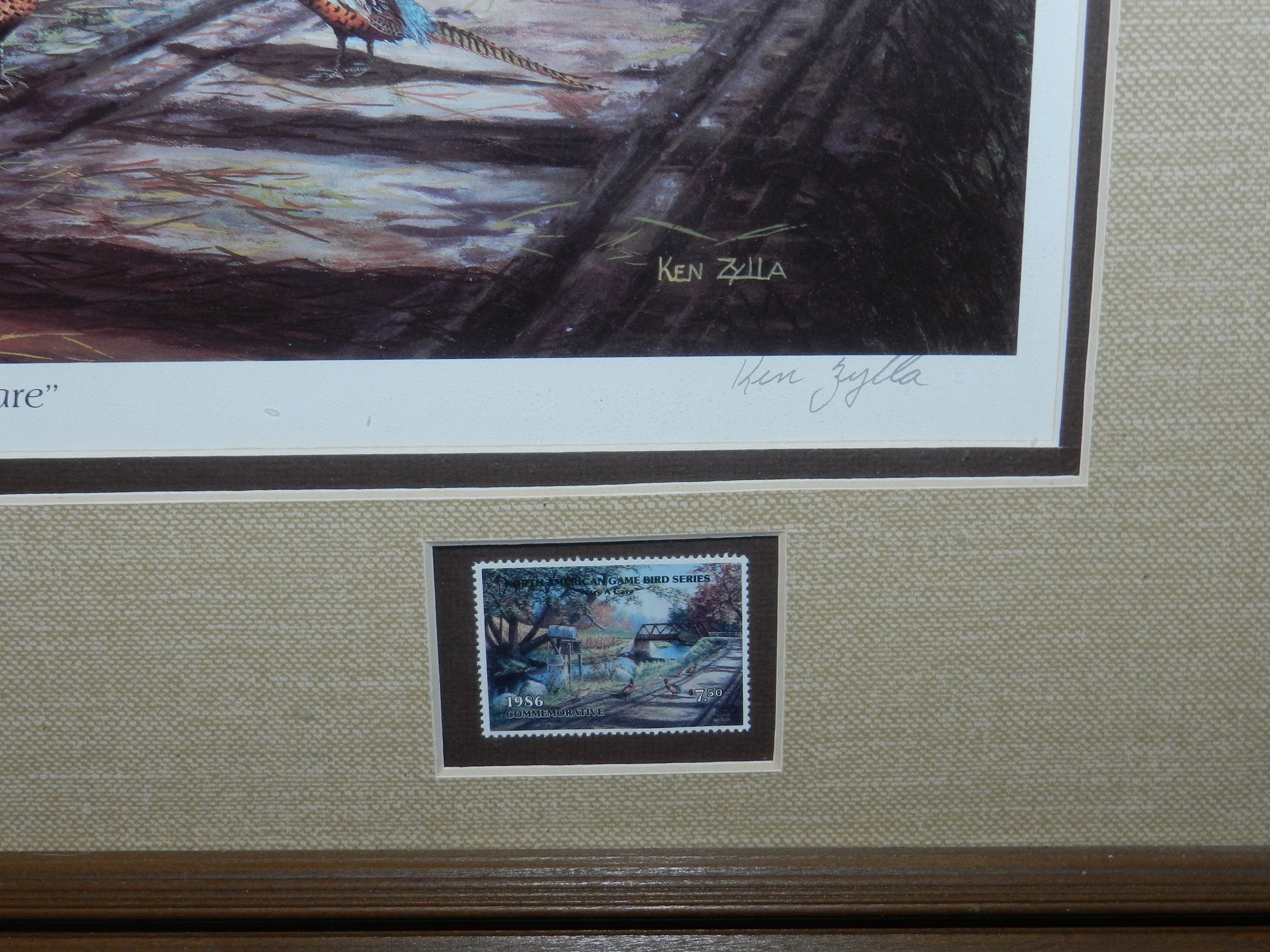 HAND SIGNED KEN ZYLLA "NARY A CARE" FRAMED PRINT WITH STAMP