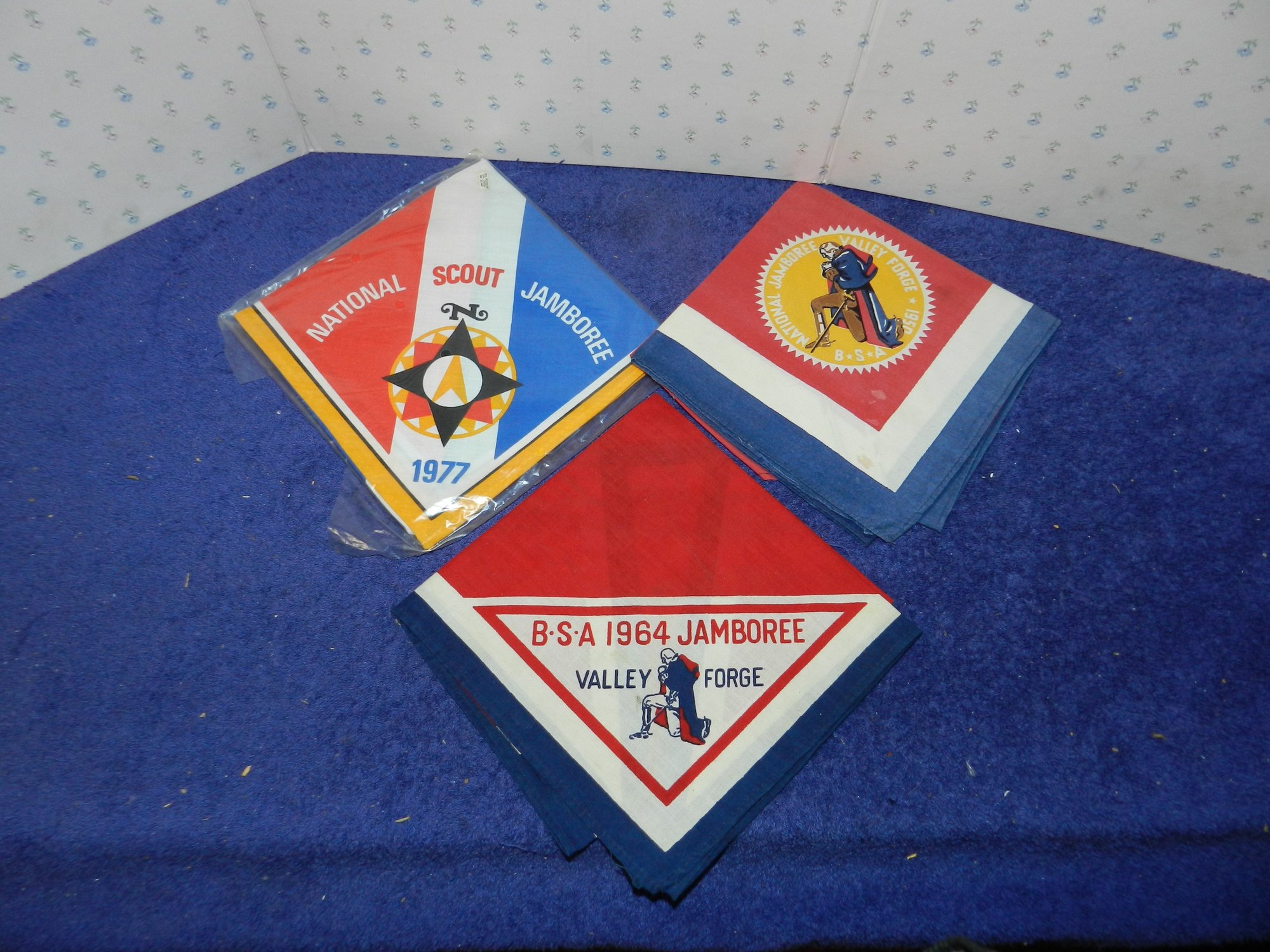 SET OF 3 AUTHENTIC BOY SCOUT JAMBOREE NECKERCHIEFS 1950 1964 1977