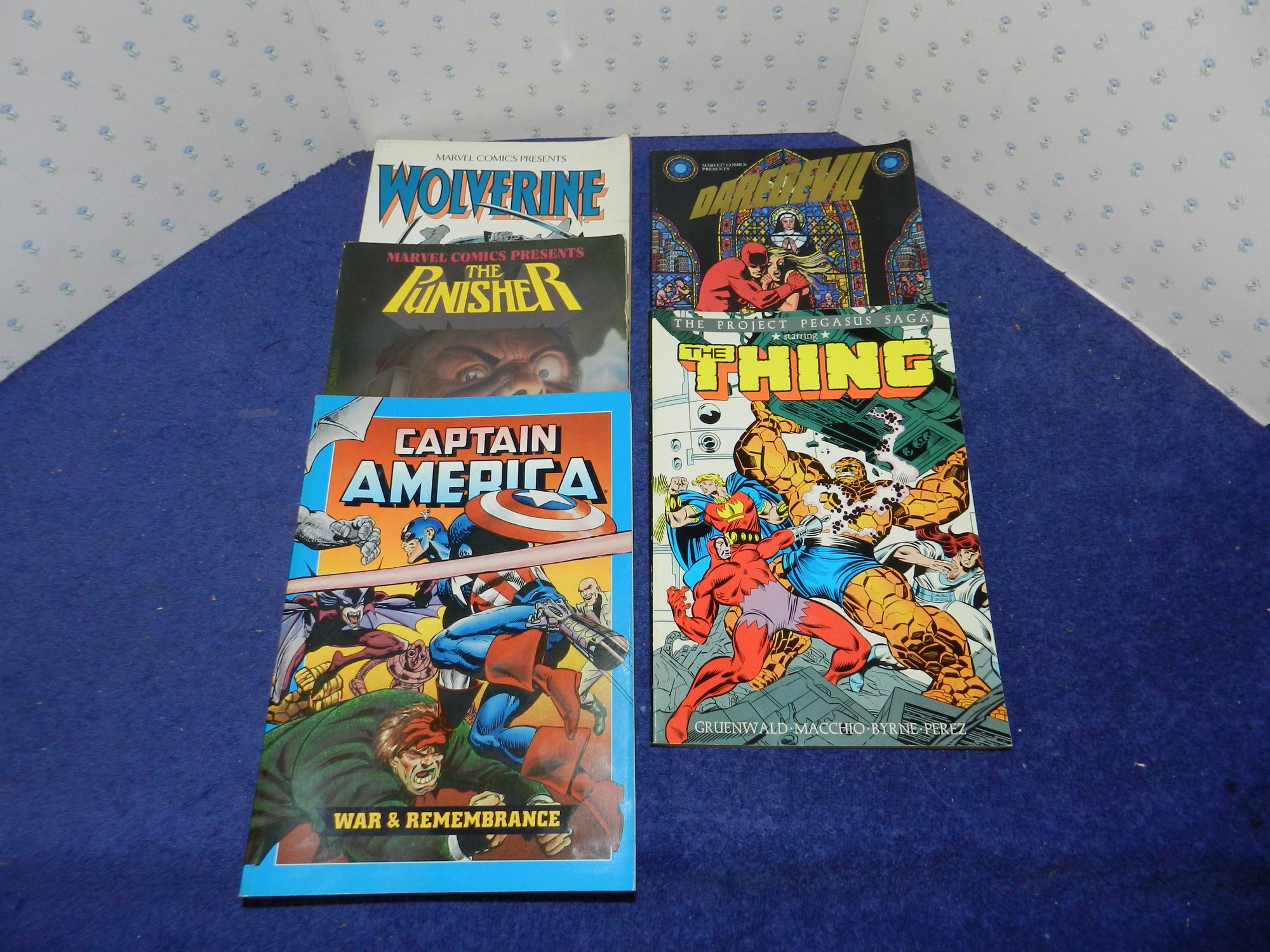 SET OF GRAPHIC NOVELS PUNISHER WOLVERINE THING CAPT AMERICA DAREDEVIL