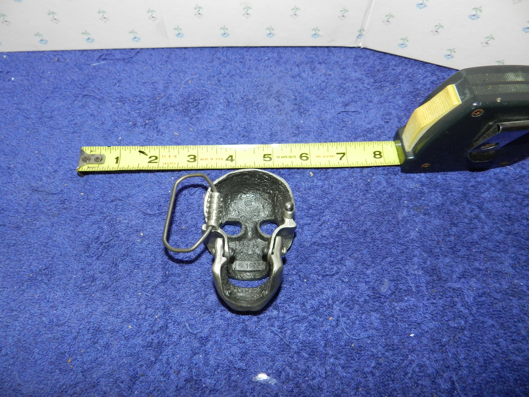 SOLID PEWTER BELT BUCKLE HINGED JAW SKULL
