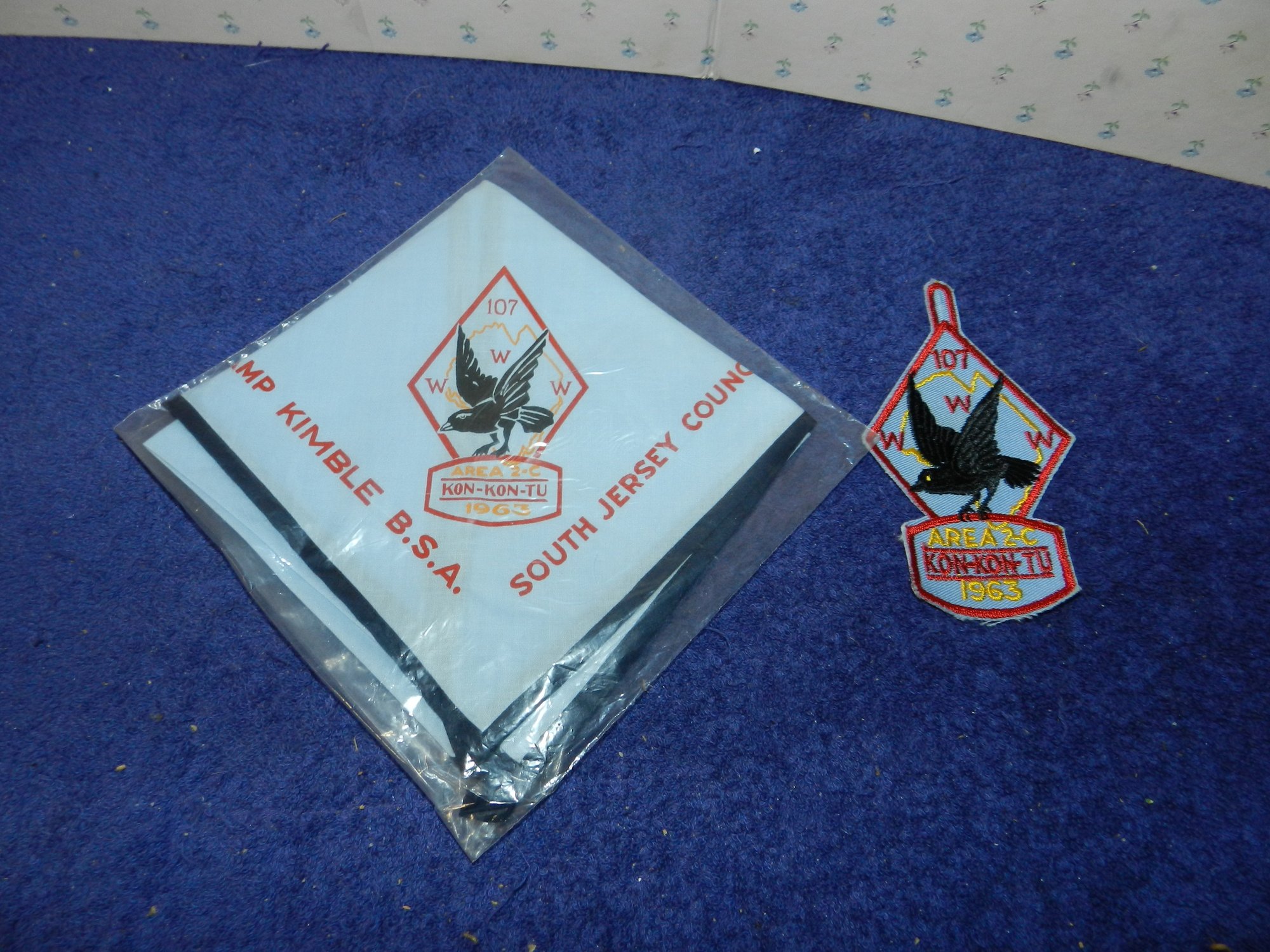 VINTAGE BSA OA NECKERCHIEF & PATCH 1963 CAMP KIMBLE KON-KON-TU LODGE