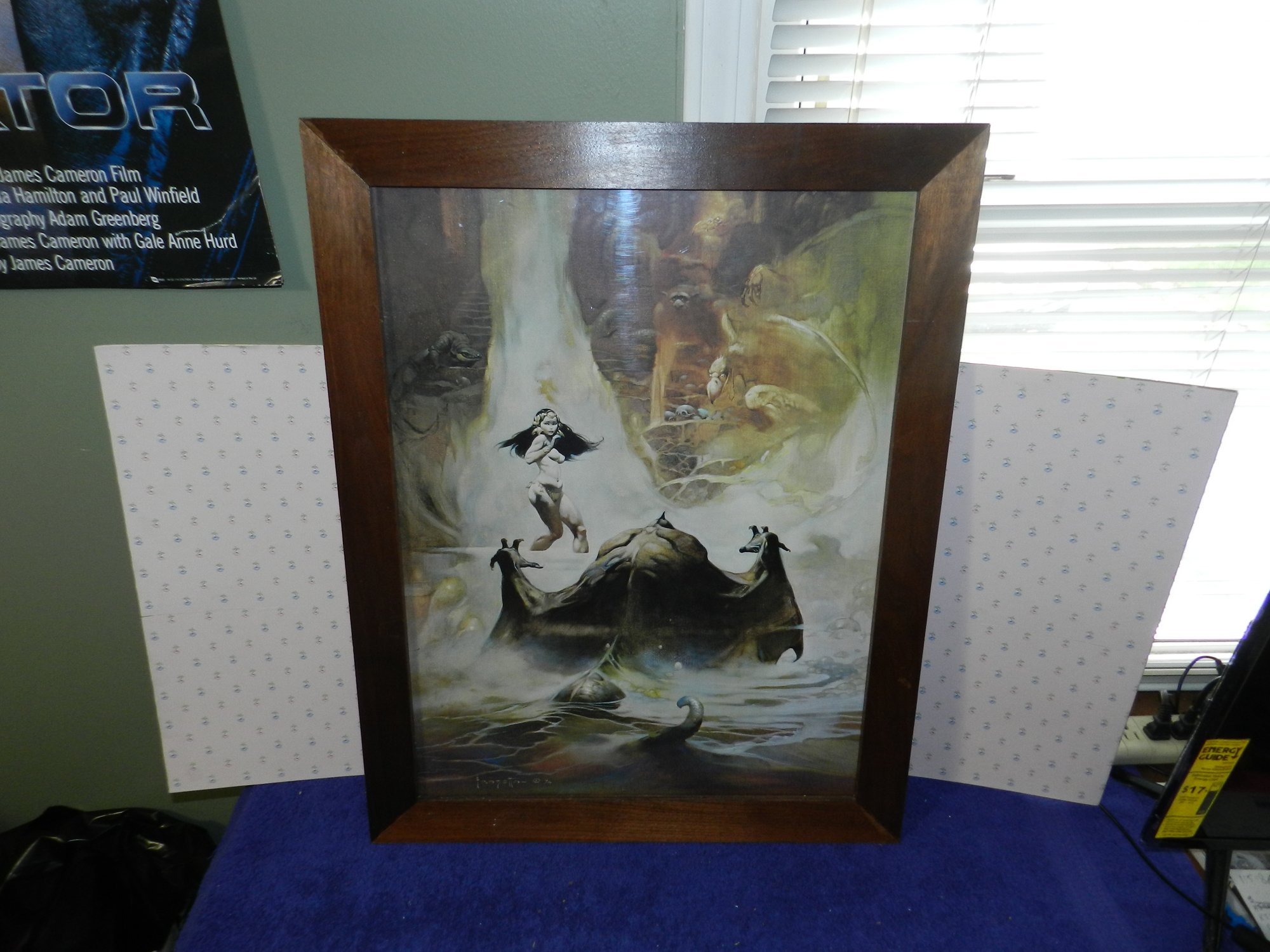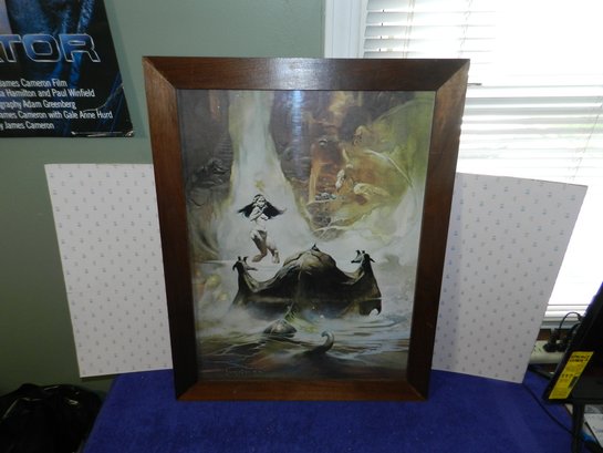 VINTAGE FRANK FRAZETTA AT THE EARTH'S CORE WOOD FRAMED PRINT