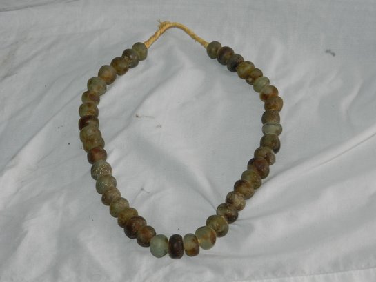 VINTAGE GLASS BEADS ON WOVEN ROPE NECKLACE
