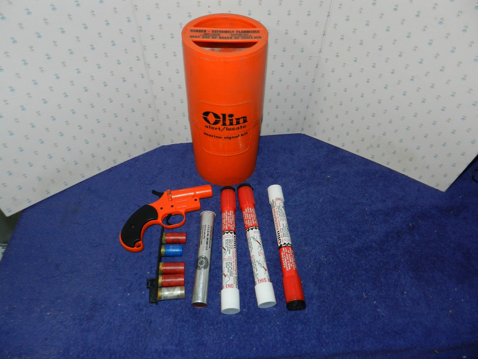 VINTAGE OLIN MARINE SIGNAL FLARE KIT IN CASE