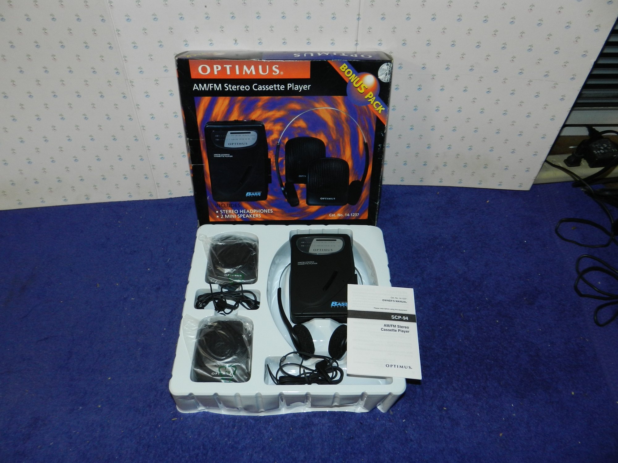 VINTAGE RADIO SHACK OPTIMUS AM/FM CASSETTE PLAYER W/ SPEAKERS NOS