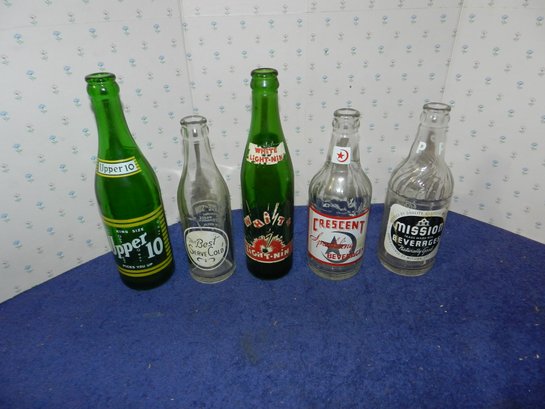 VINTAGE SODA BOTTLES WHITE LIGHTIN' UPPER 10 CRESCENT MISSION