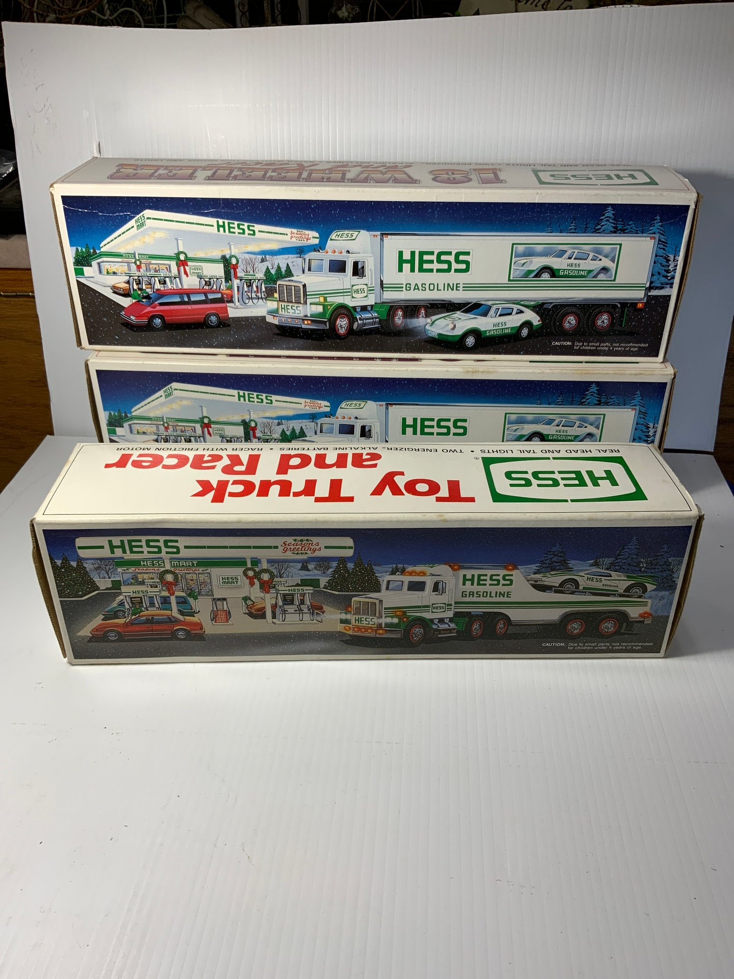 3 Hess Trucks With Race Cars