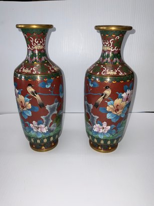 Pair Of Cloisonne 10 Inch Vases