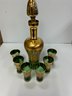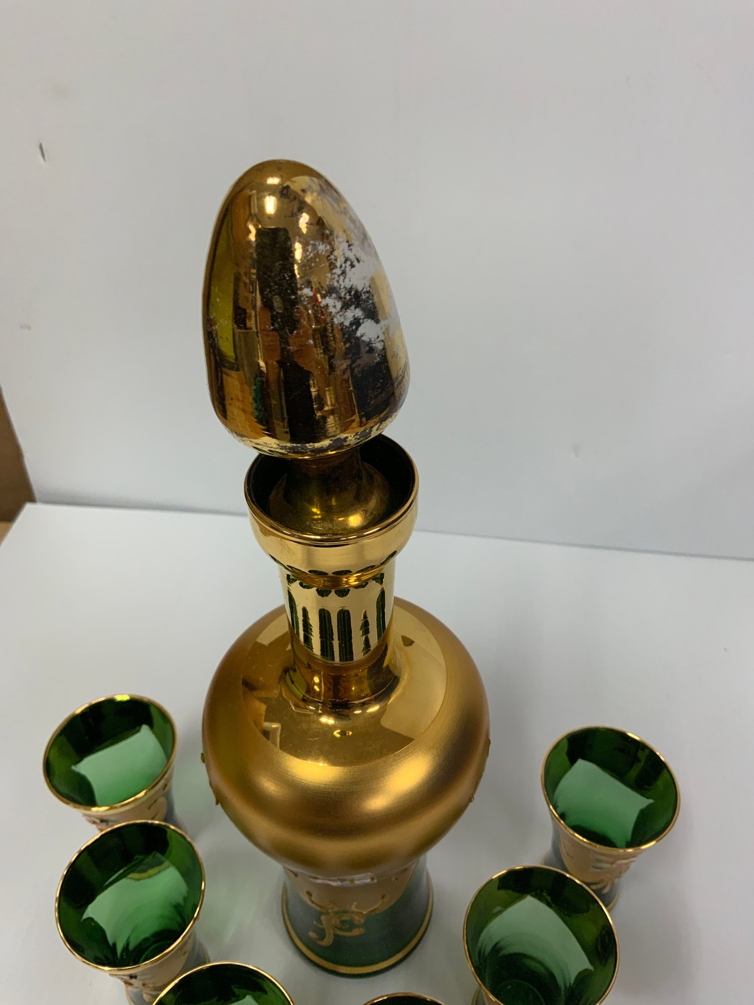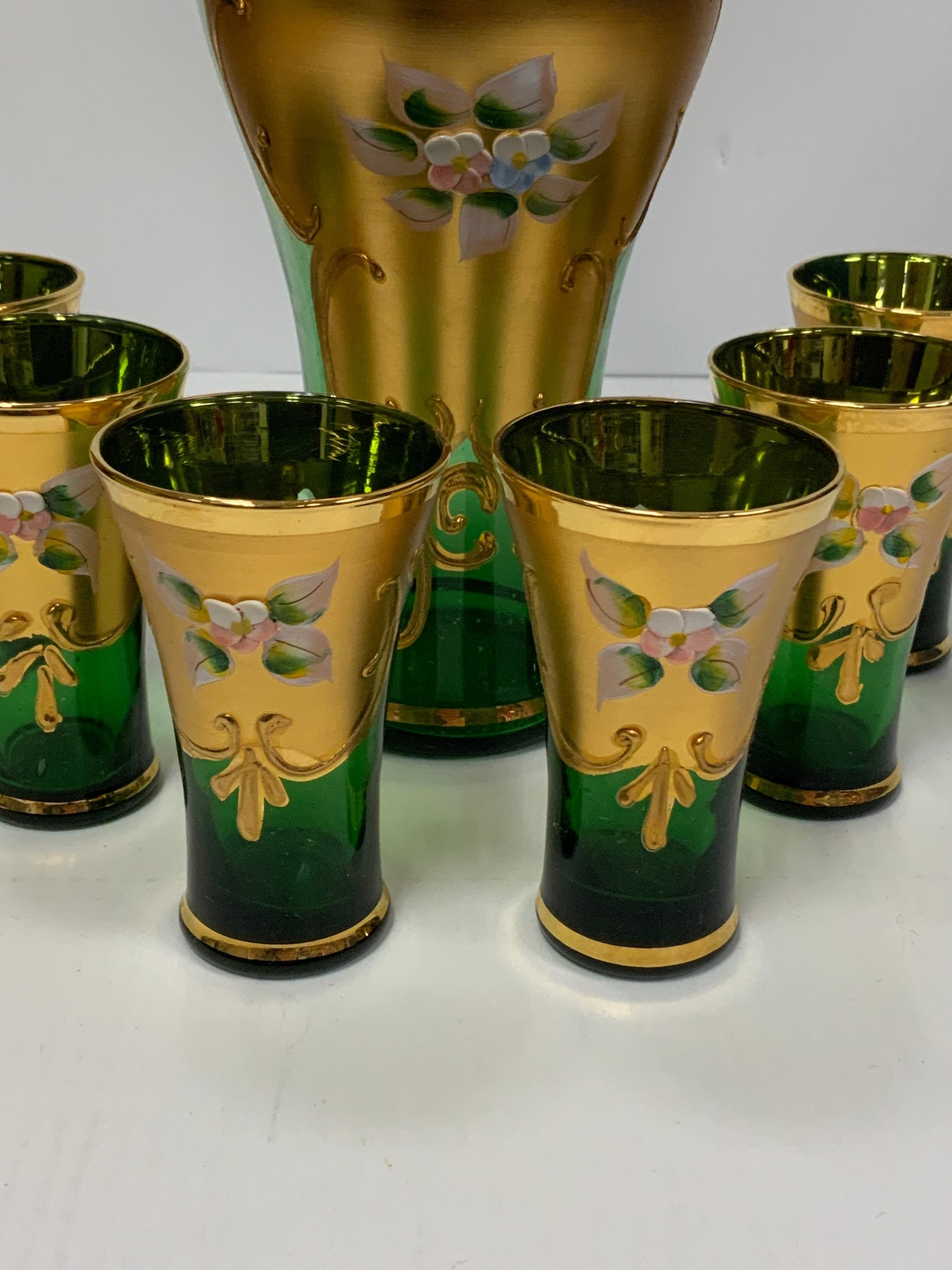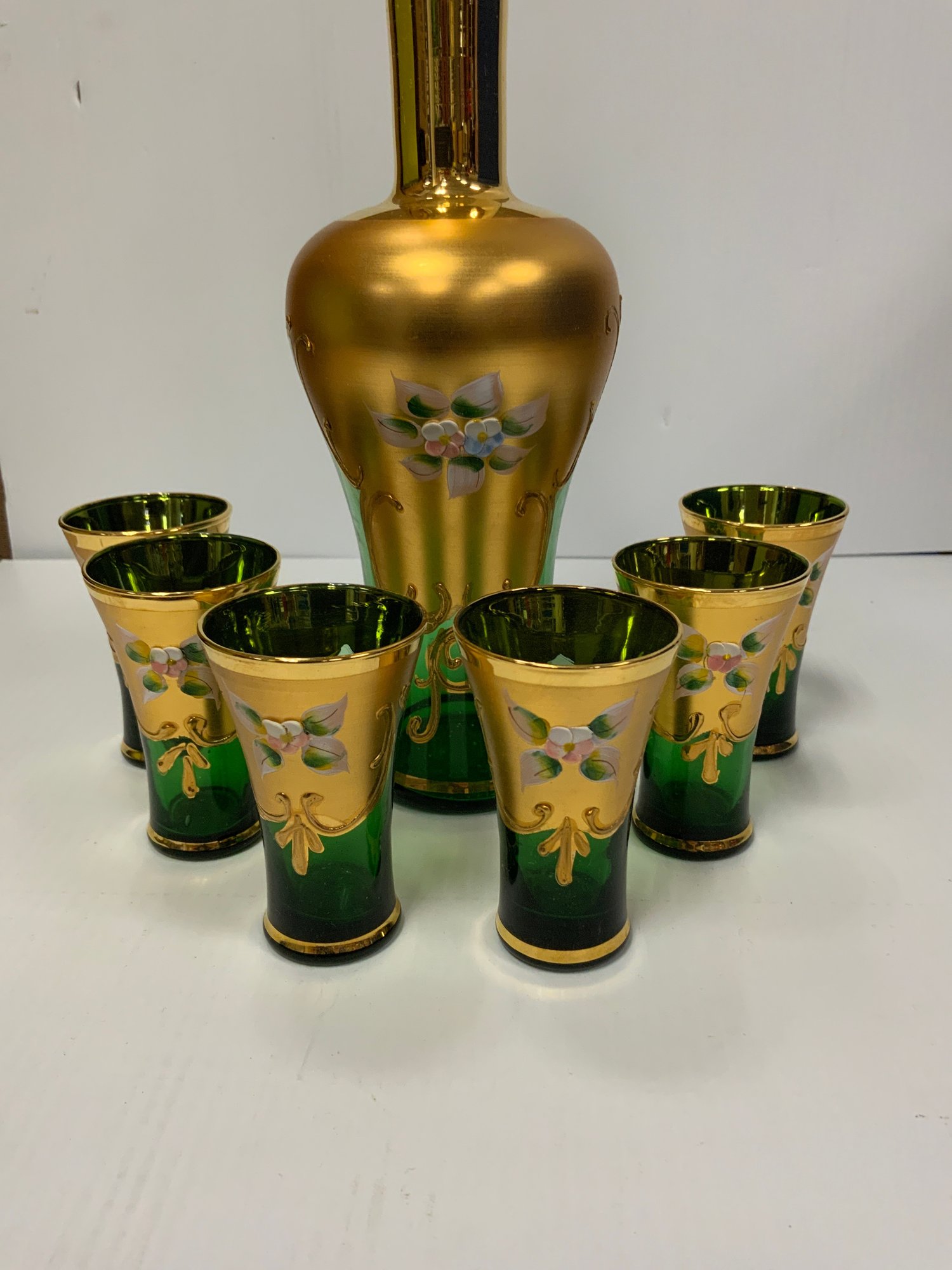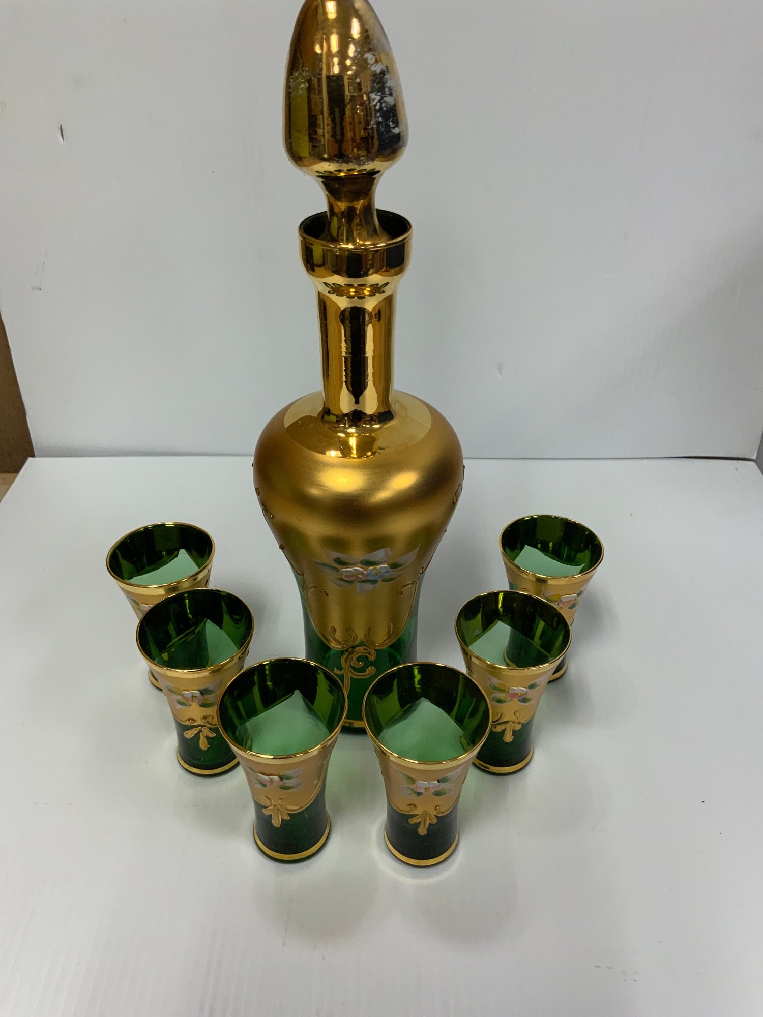 Bohemian Decanter Set With Applied Flowers And gold detail
